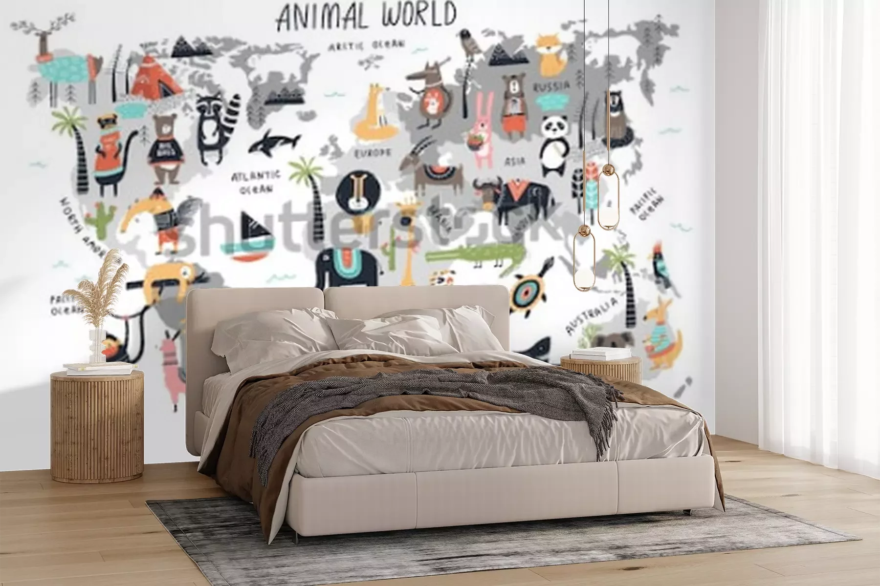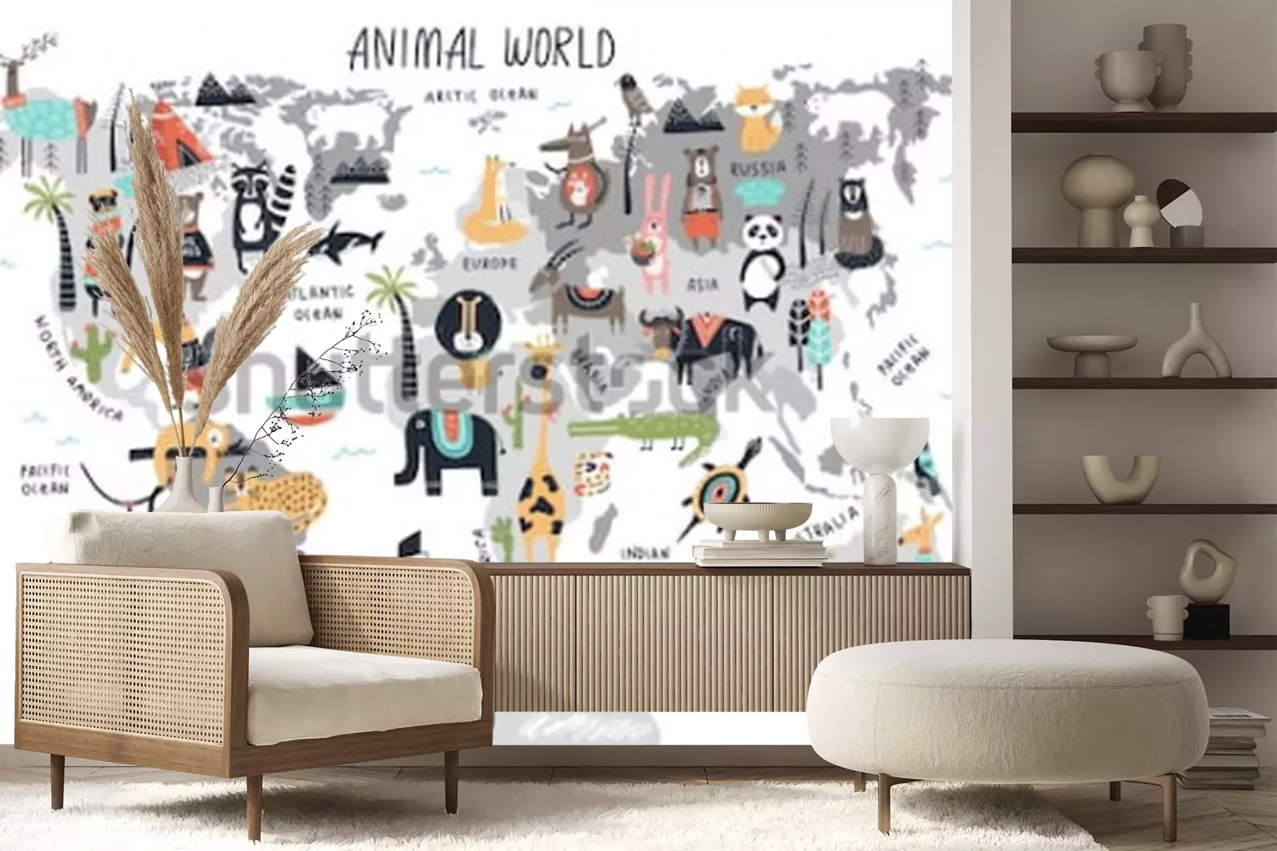 Fototapete Grafische Weltkarte mit Tieren