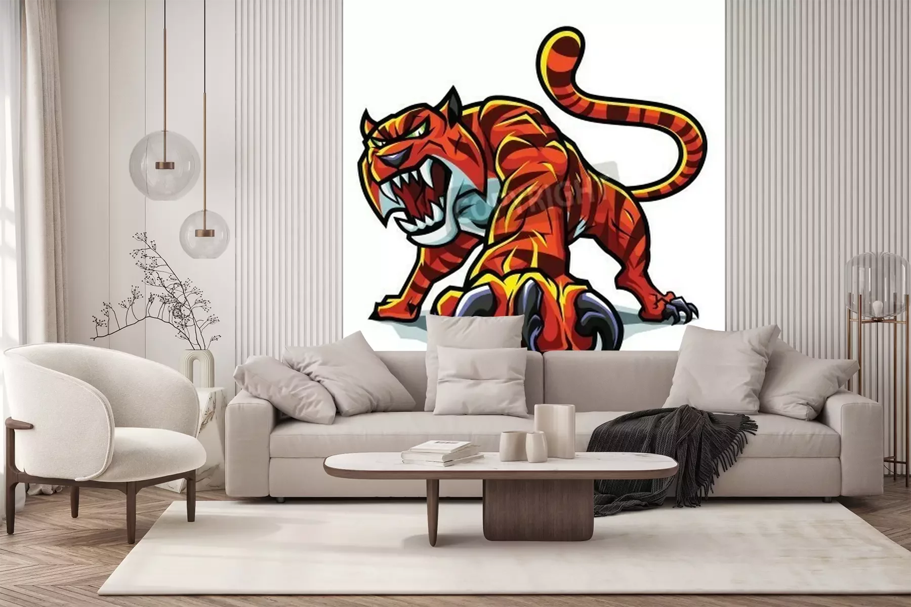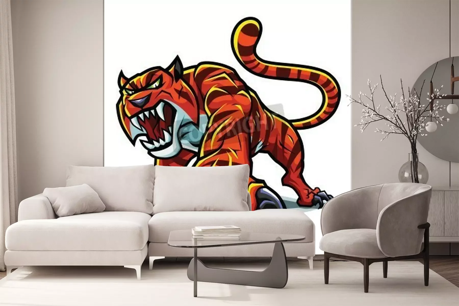 Fototapete Grafischer tiger auf weißem hintergrund