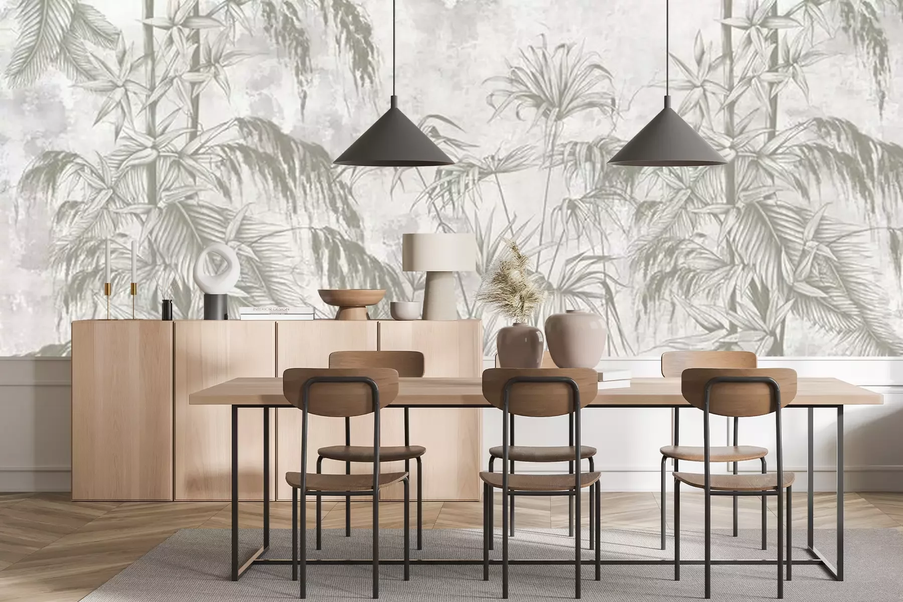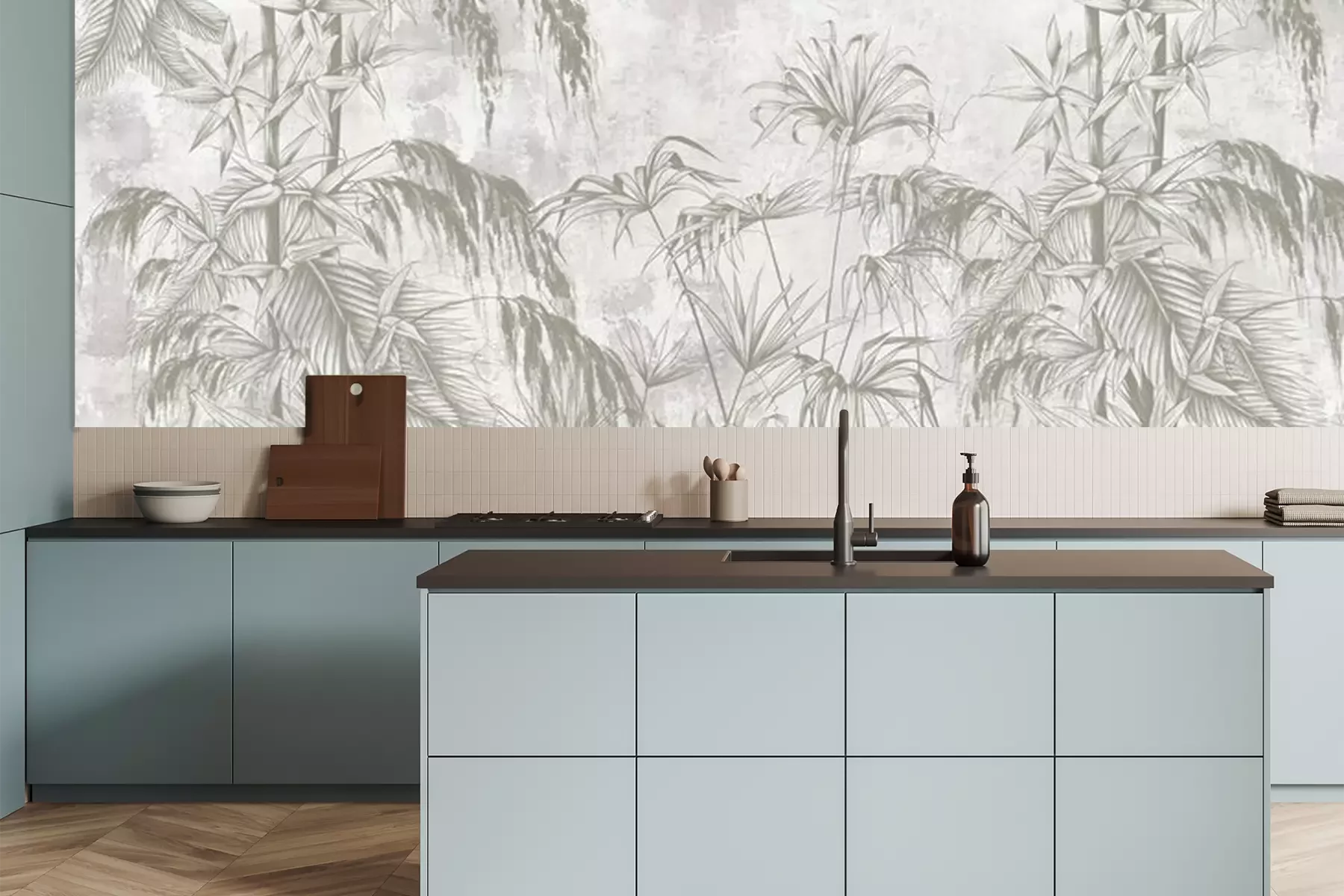 Graue Weidenblätter auf hellem AquarellgrundFototapete