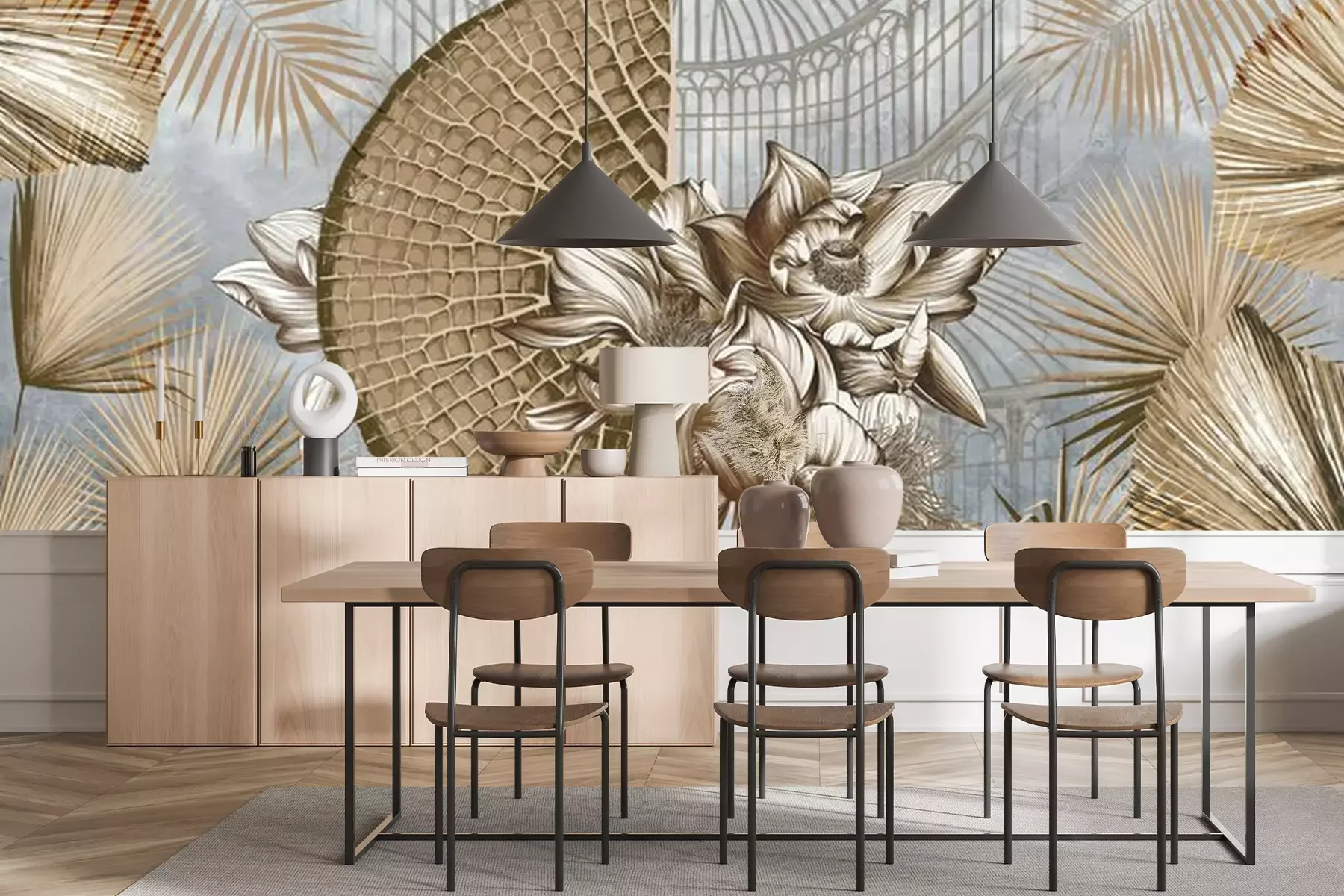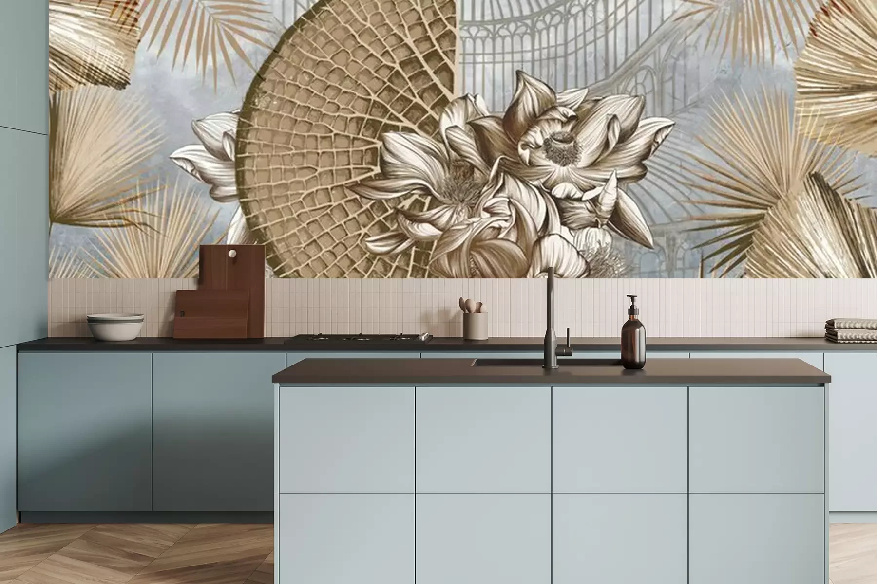 Das Material Premium+ besteht aus einer strukturierten Vinyl-Oberschicht und einem Trägermaterial (Vlies) mit einer Grammatur von 255 g/m², das kleine Unebenheiten der Wand zuverlässig kaschiert. Die feine Sandstruktur verleiht der Oberfläche eine luxuriöse Haptik, während das halbmatte Finish die Tiefe der Farben betont. Das Material ist dampfdurchlässig – so kann diese Fototapete auch in Küchen und Badezimmern eingesetzt werden. Die maximale Breite einer Tapetenbahn beträgt 100 cm. Bei größeren Abmessungen besteht die Fototapete aus mehreren gleich großen Bahnen. Der Kleber wird direkt auf die Wand aufgetragen, und die Fototapete wird auf Stoß angebracht, was für einen ästhetischen Effekt ohne sichtbare Fugen sorgt. Die Oberfläche ist pflegeleicht und kann bei Bedarf sanft mit einem feuchten Tuch abgewischt werden.