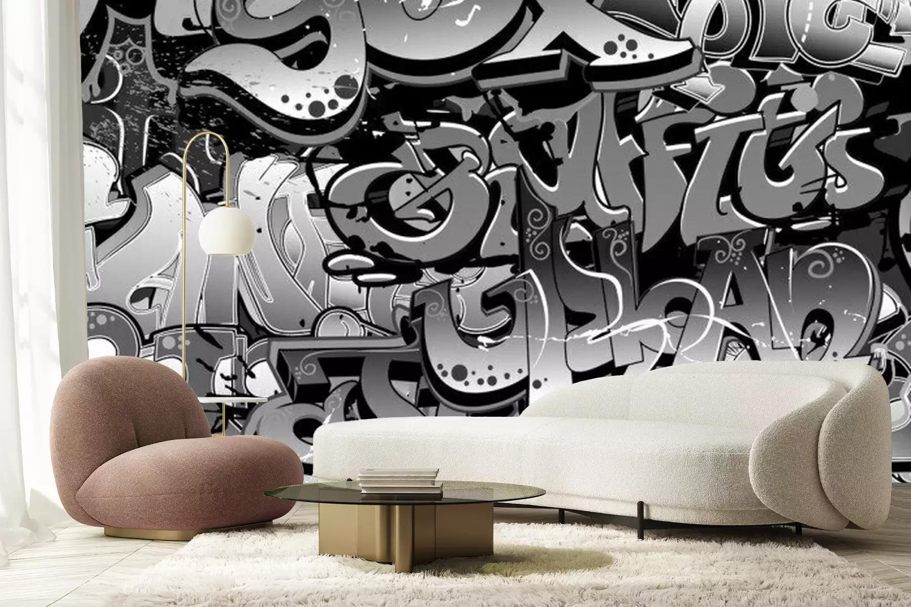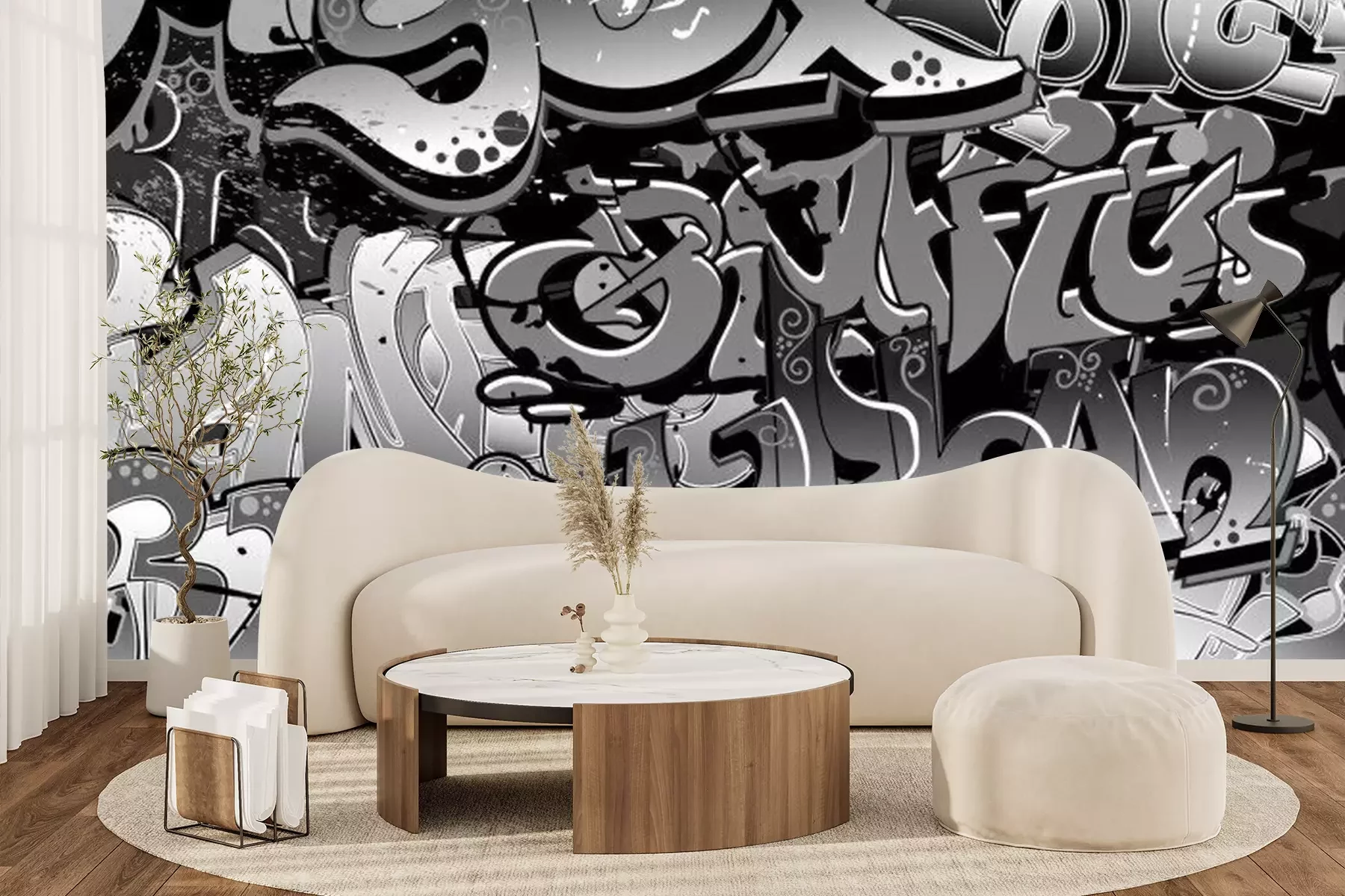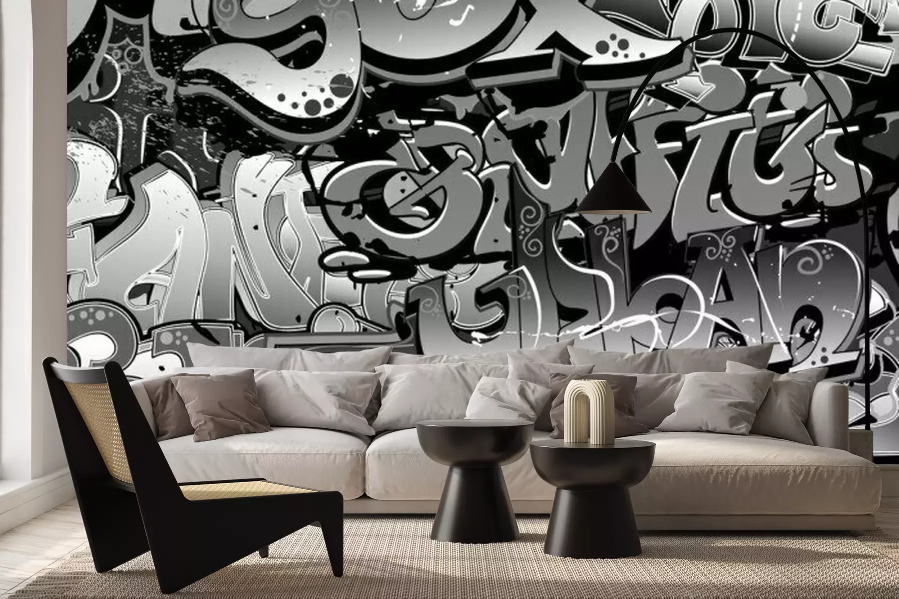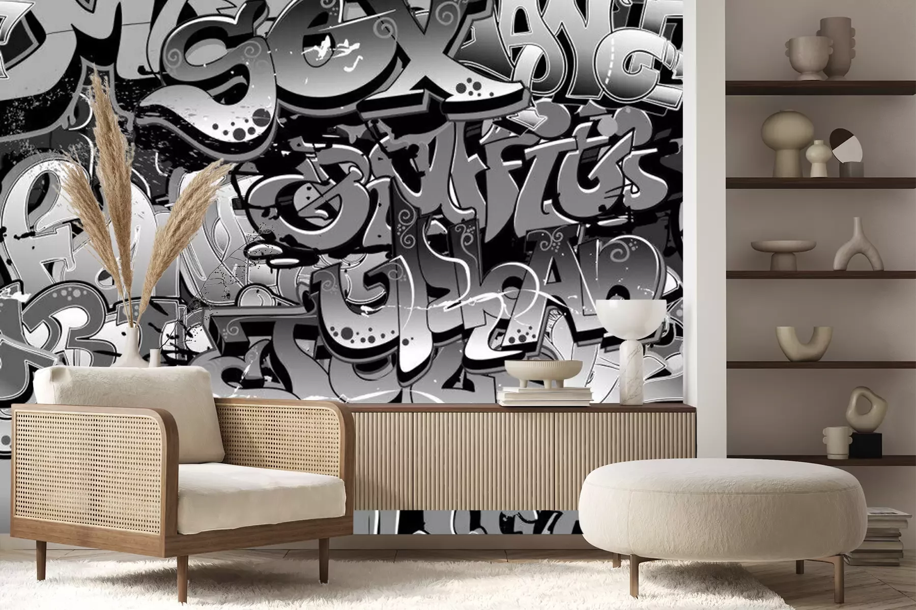 Buntes Graffiti mit Slogans und FarbeffektenFototapete