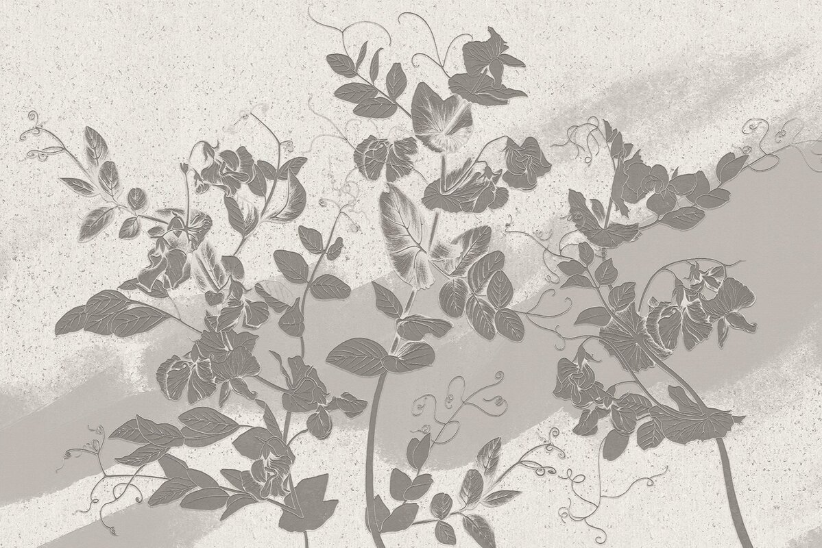 Fototapete: Graue Blätter an einer sandfarbenen Wand