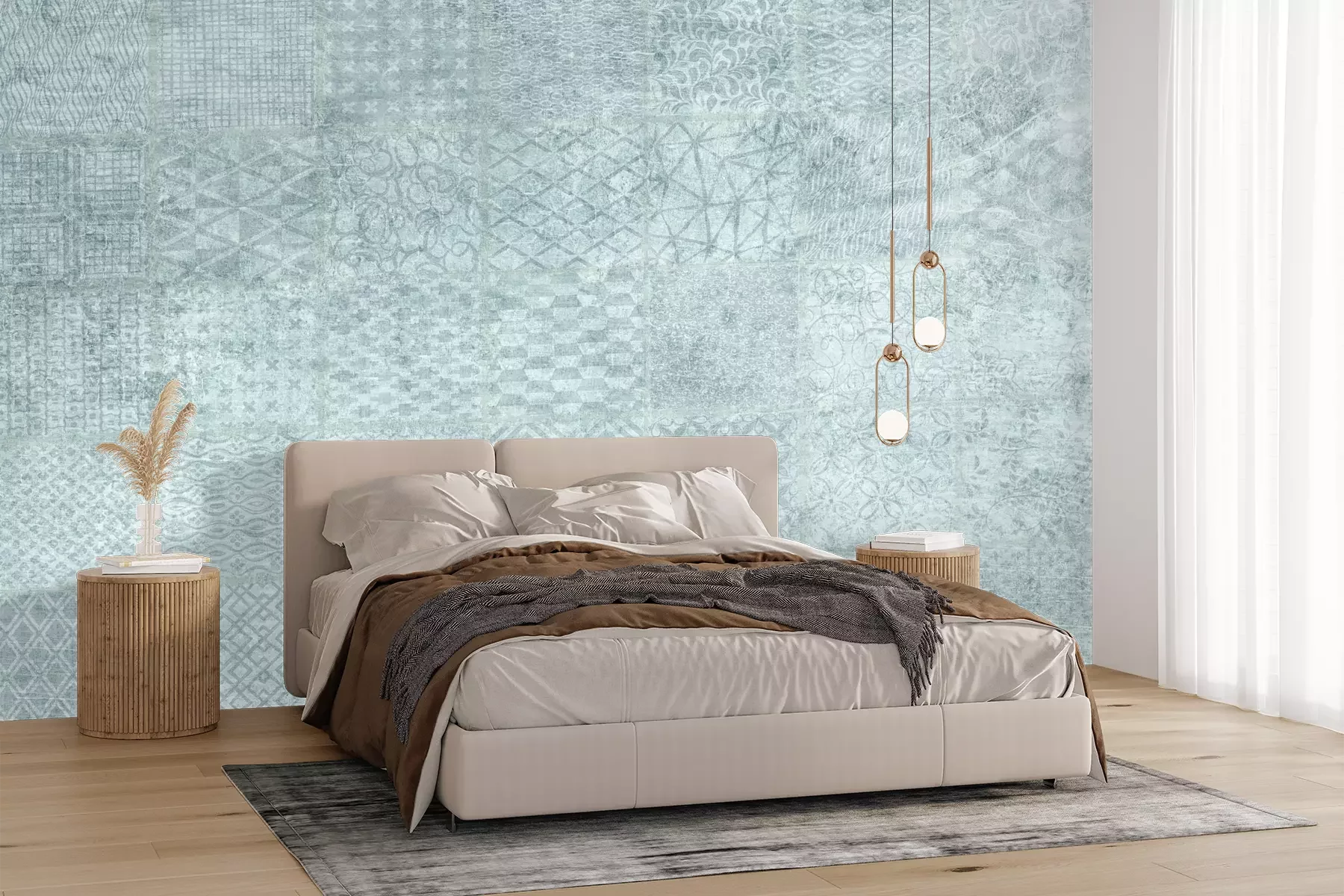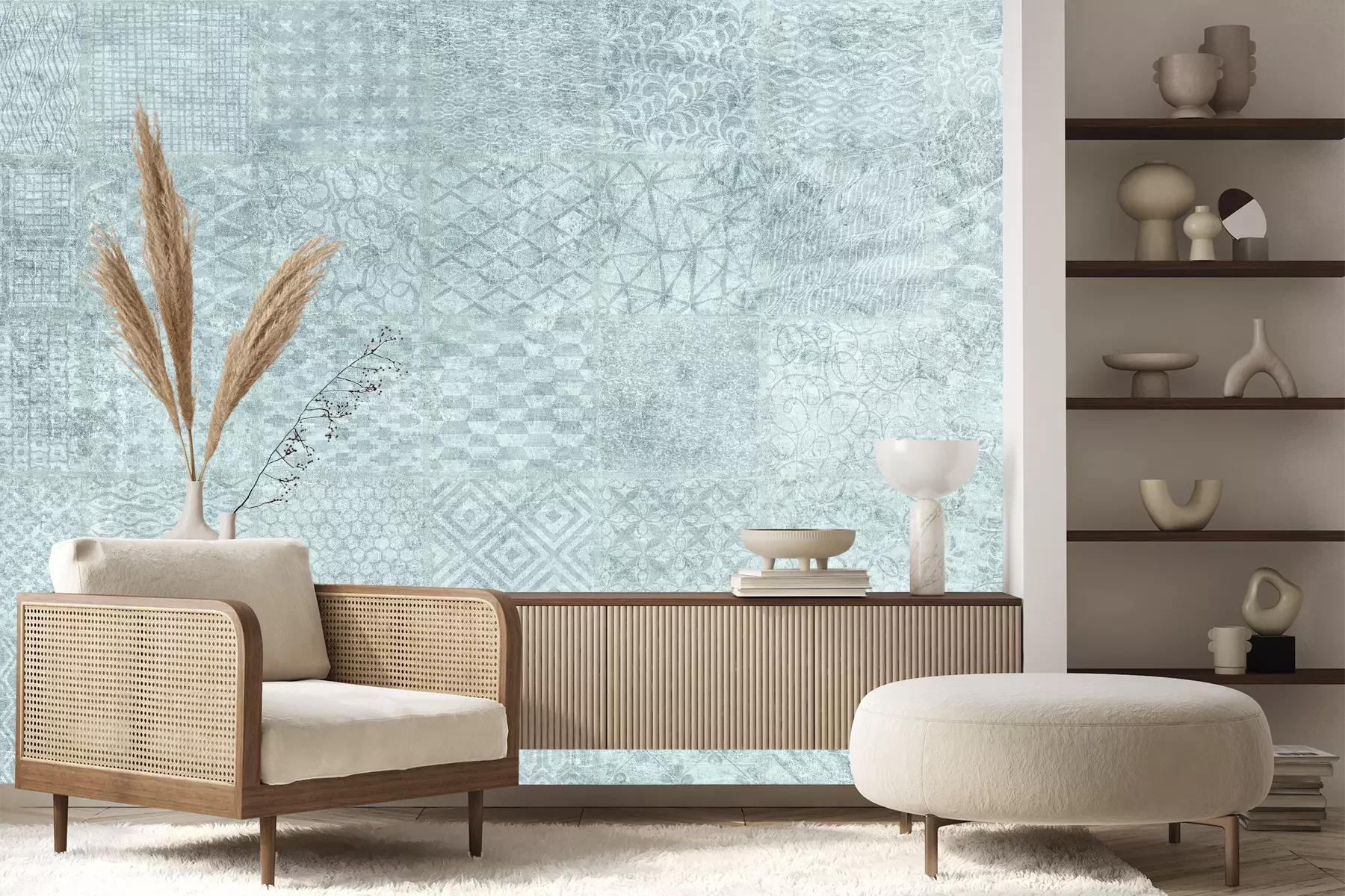 Das Material Premium+ besteht aus einer strukturierten Vinyl-Oberschicht und einem Trägermaterial (Vlies) mit einer Grammatur von 255 g/m², das kleine Unebenheiten der Wand zuverlässig kaschiert. Die feine Sandstruktur verleiht der Oberfläche eine luxuriöse Haptik, während das halbmatte Finish die Tiefe der Farben betont. Das Material ist dampfdurchlässig – so kann diese Fototapete auch in Küchen und Badezimmern eingesetzt werden. Die maximale Breite einer Tapetenbahn beträgt 100 cm. Bei größeren Abmessungen besteht die Fototapete aus mehreren gleich großen Bahnen. Der Kleber wird direkt auf die Wand aufgetragen, und die Fototapete wird auf Stoß angebracht, was für einen ästhetischen Effekt ohne sichtbare Fugen sorgt. Die Oberfläche ist pflegeleicht und kann bei Bedarf sanft mit einem feuchten Tuch abgewischt werden.