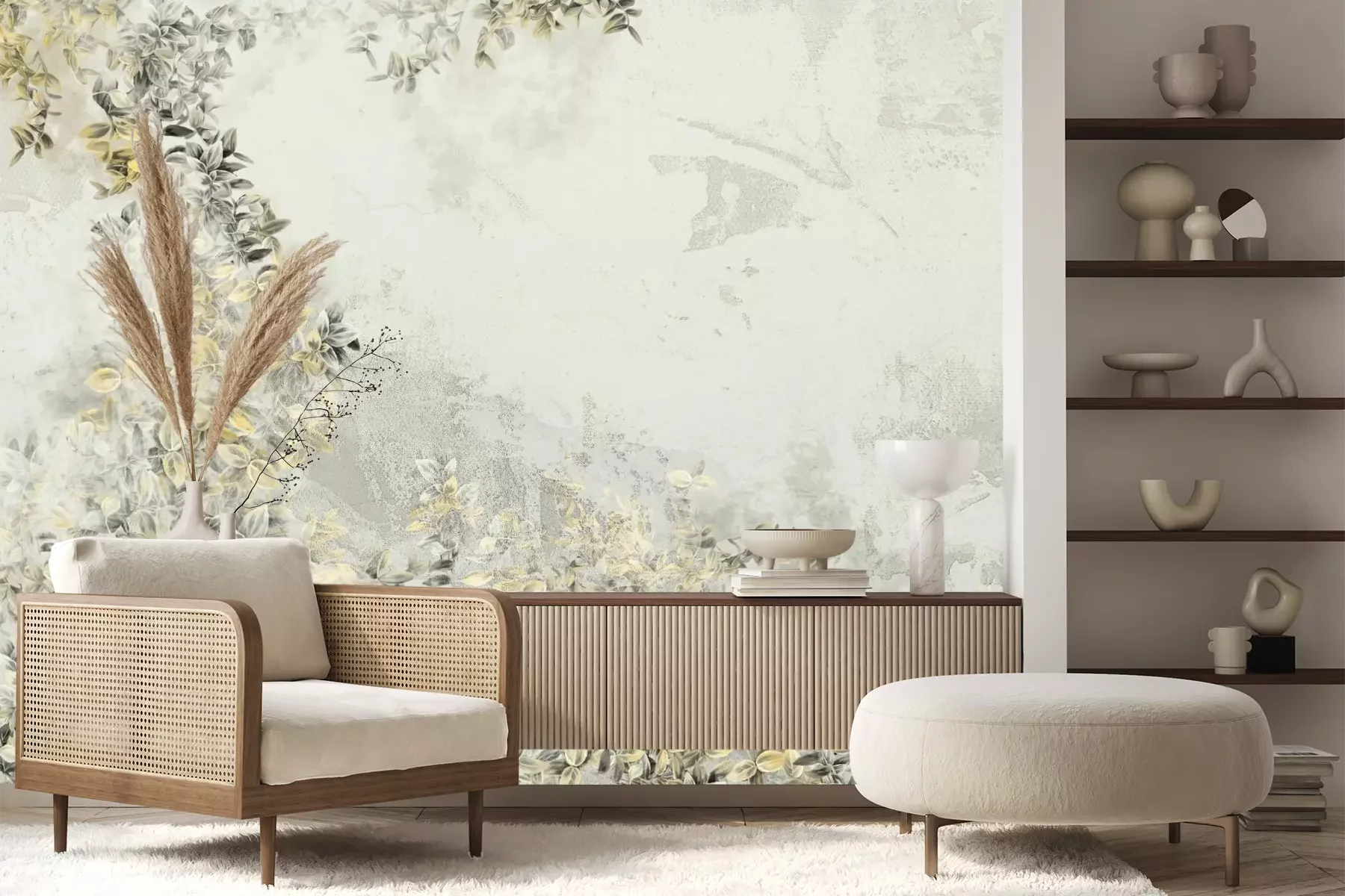 Das Material Premium+ besteht aus einer strukturierten Vinyl-Oberschicht und einem Trägermaterial (Vlies) mit einer Grammatur von 255 g/m², das kleine Unebenheiten der Wand zuverlässig kaschiert. Die feine Sandstruktur verleiht der Oberfläche eine luxuriöse Haptik, während das halbmatte Finish die Tiefe der Farben betont. Das Material ist dampfdurchlässig – so kann diese Fototapete auch in Küchen und Badezimmern eingesetzt werden. Die maximale Breite einer Tapetenbahn beträgt 100 cm. Bei größeren Abmessungen besteht die Fototapete aus mehreren gleich großen Bahnen. Der Kleber wird direkt auf die Wand aufgetragen, und die Fototapete wird auf Stoß angebracht, was für einen ästhetischen Effekt ohne sichtbare Fugen sorgt. Die Oberfläche ist pflegeleicht und kann bei Bedarf sanft mit einem feuchten Tuch abgewischt werden.