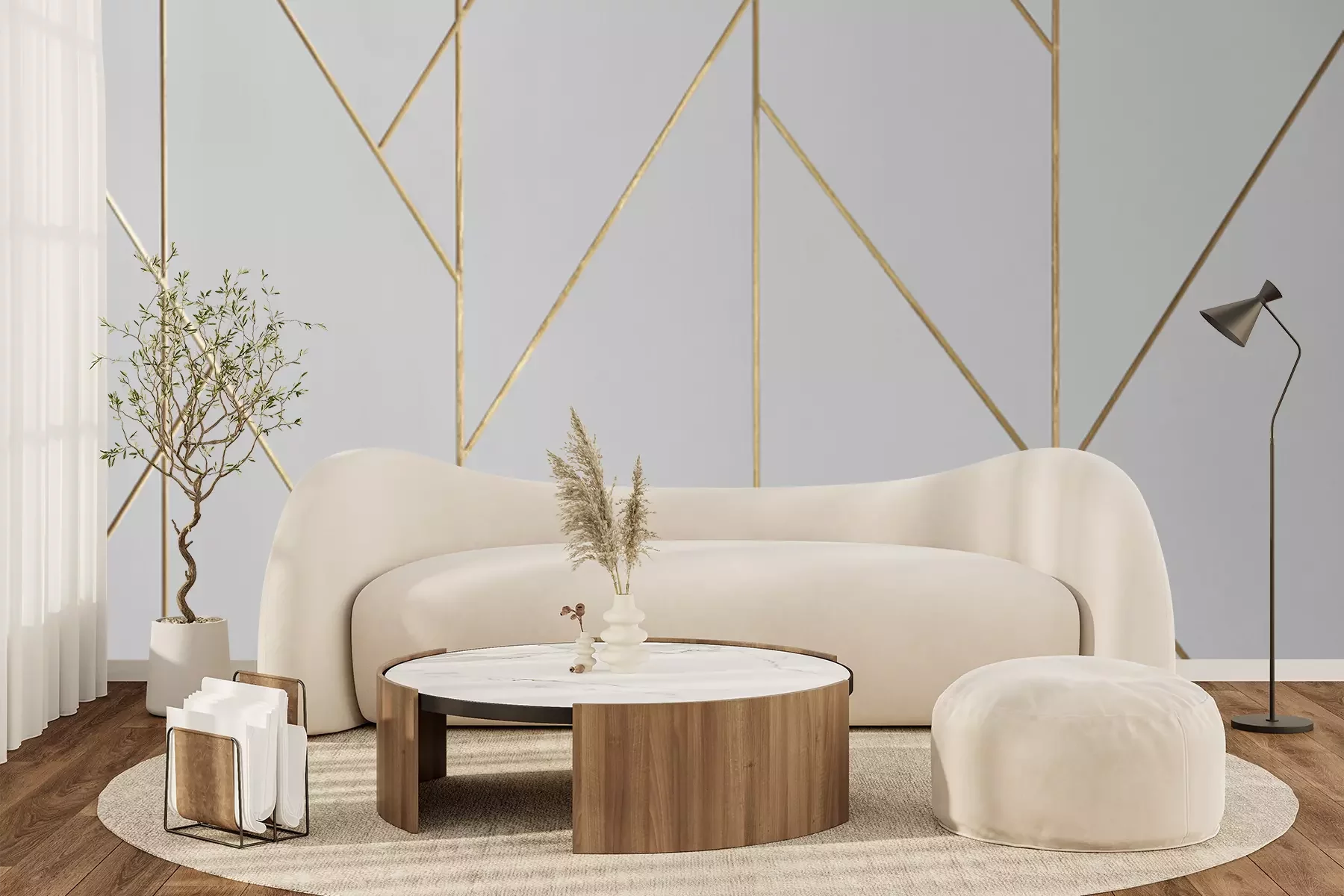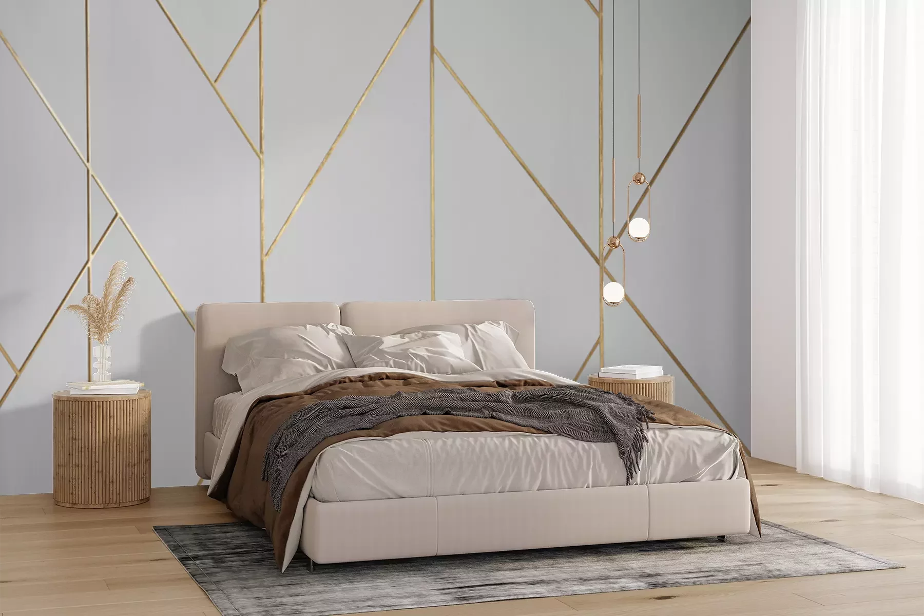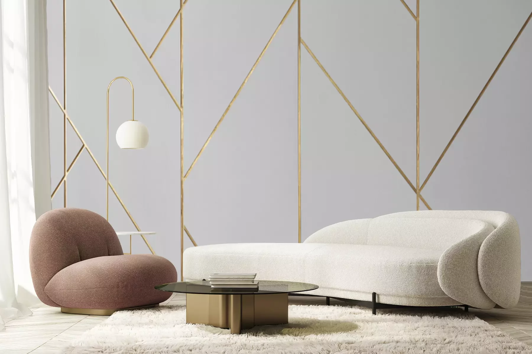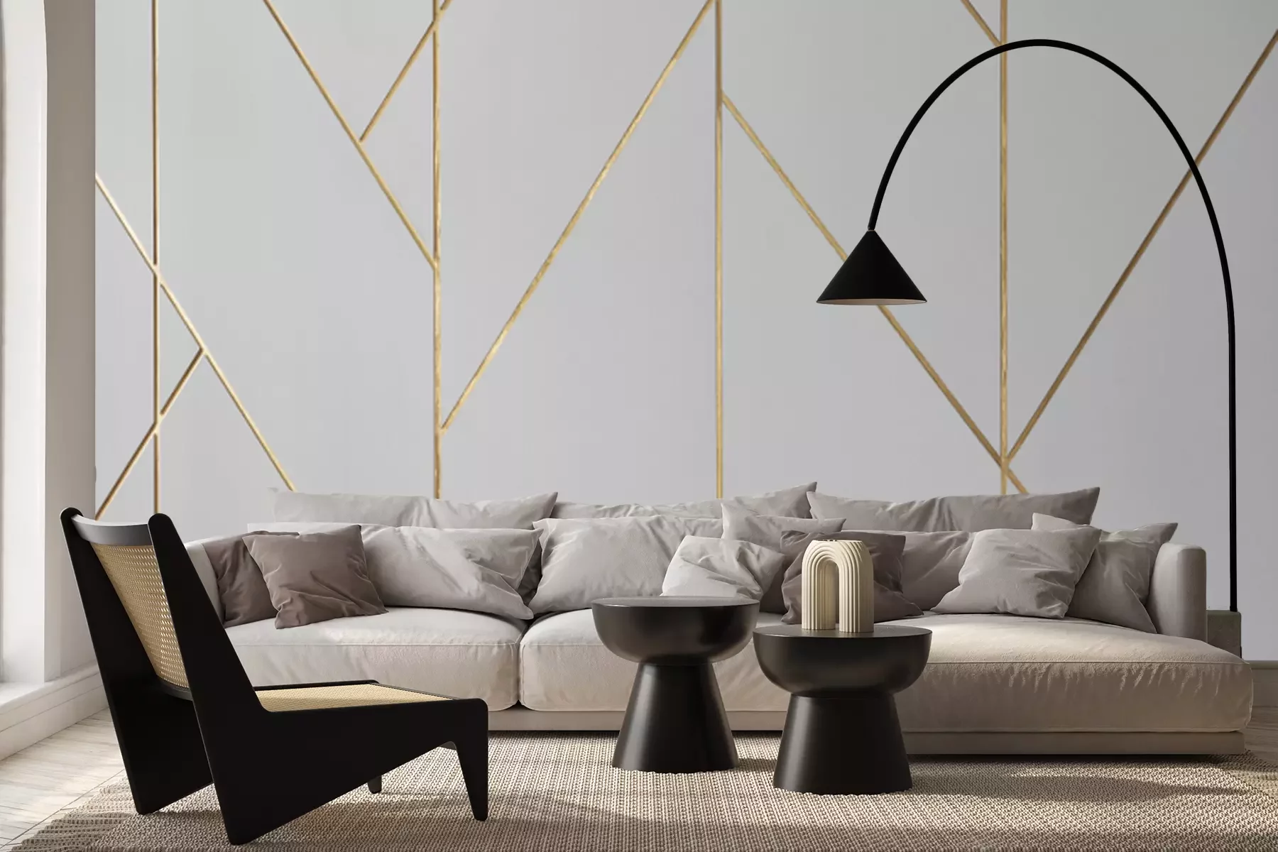 Fototapete Graue Wand Gold Linie Steinmauer Interieur