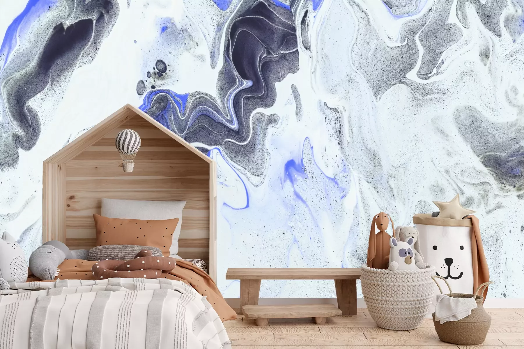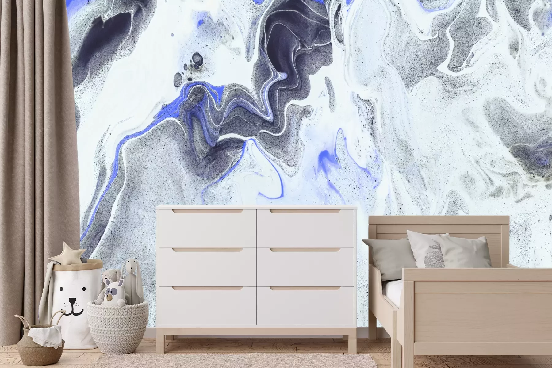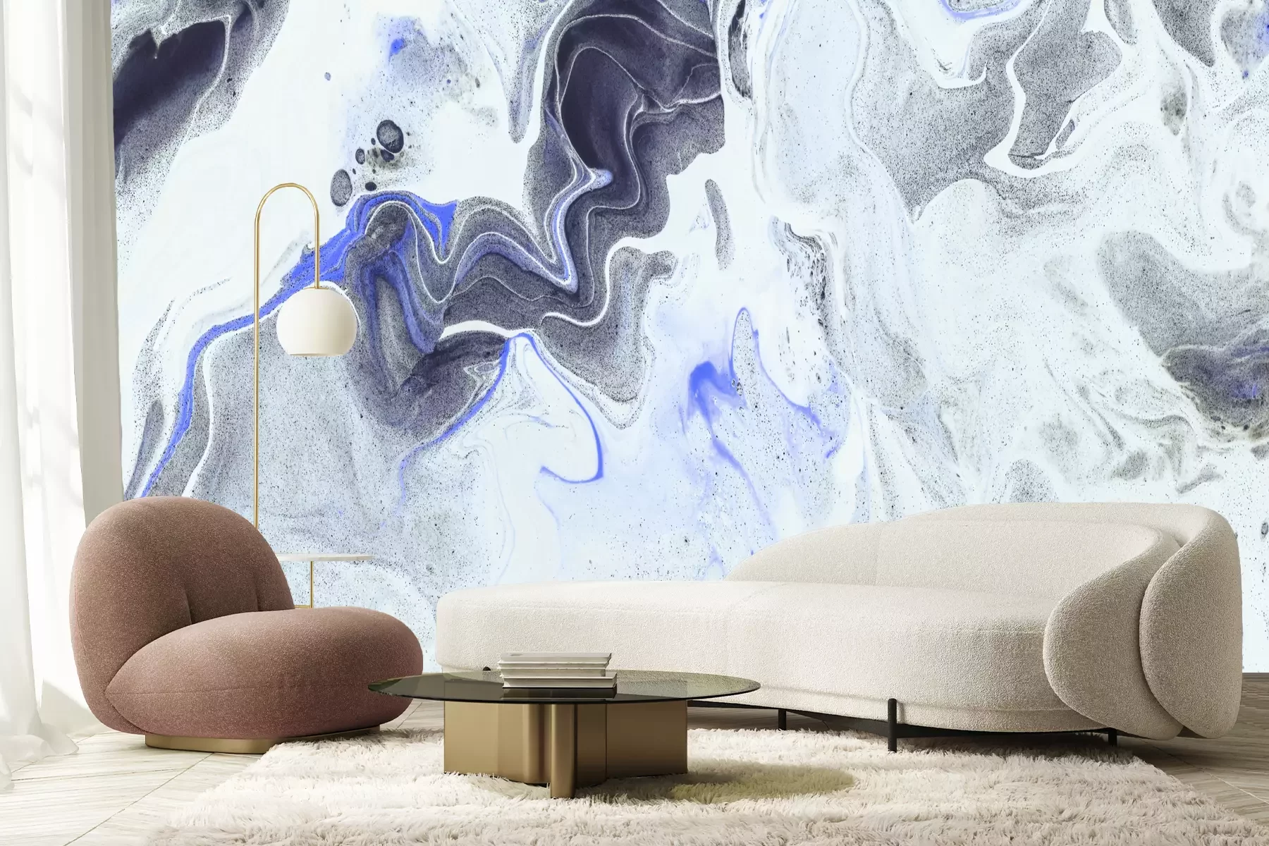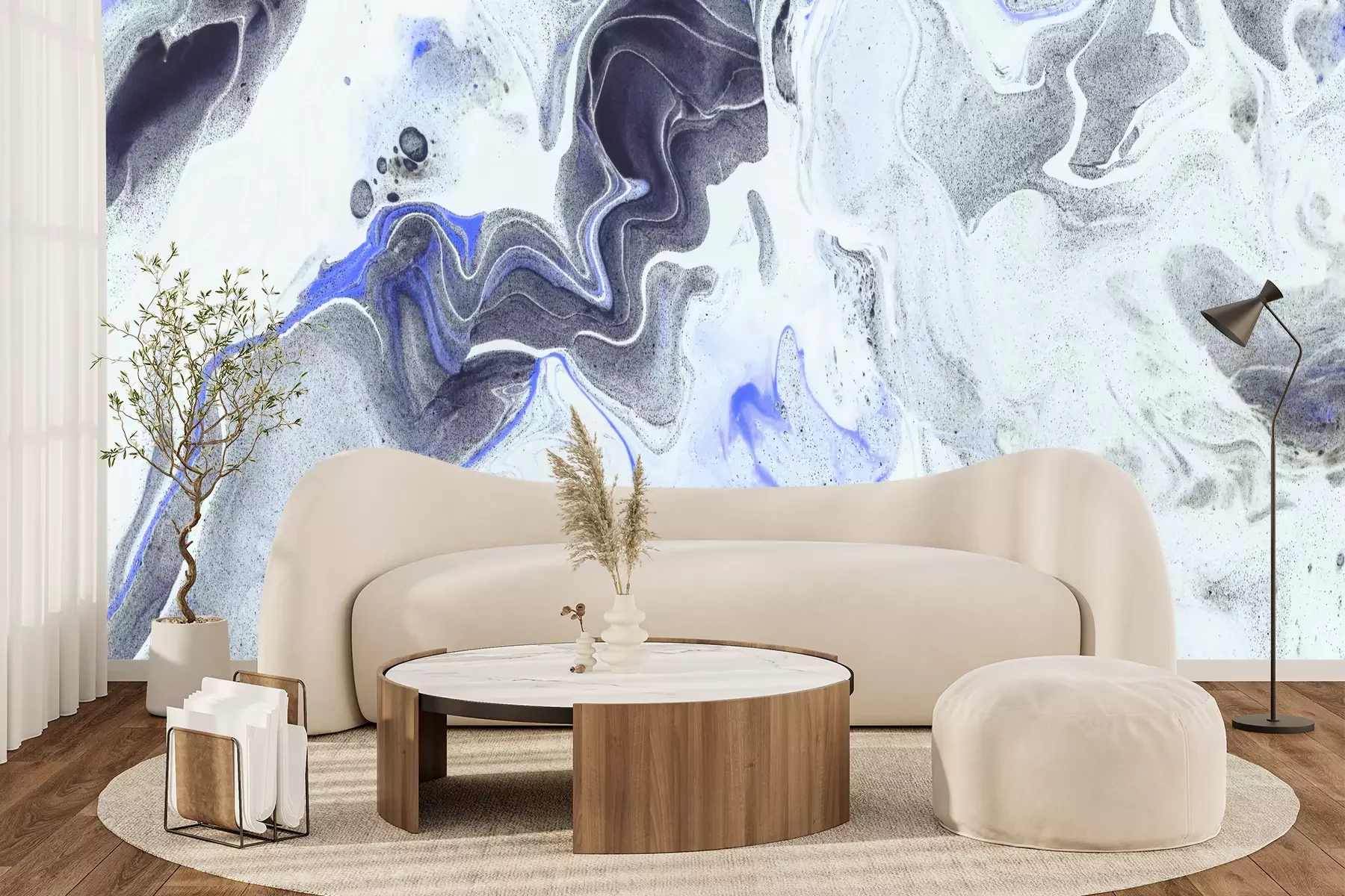 Grauer marmor mit blauen akzenten