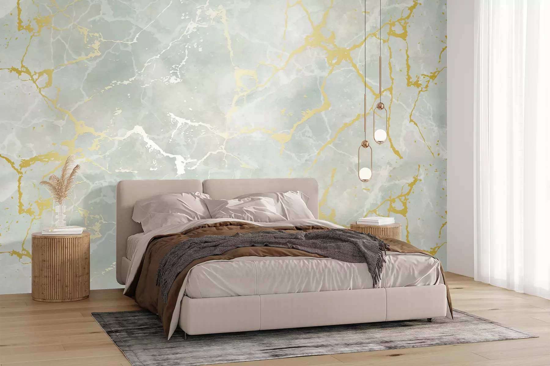 Das Material Premium+ besteht aus einer strukturierten Vinyl-Oberschicht und einem Trägermaterial (Vlies) mit einer Grammatur von 255 g/m², das kleine Unebenheiten der Wand zuverlässig kaschiert. Die feine Sandstruktur verleiht der Oberfläche eine luxuriöse Haptik, während das halbmatte Finish die Tiefe der Farben betont. Das Material ist dampfdurchlässig – so kann diese Fototapete auch in Küchen und Badezimmern eingesetzt werden. Die maximale Breite einer Tapetenbahn beträgt 100 cm. Bei größeren Abmessungen besteht die Fototapete aus mehreren gleich großen Bahnen. Der Kleber wird direkt auf die Wand aufgetragen, und die Fototapete wird auf Stoß angebracht, was für einen ästhetischen Effekt ohne sichtbare Fugen sorgt. Die Oberfläche ist pflegeleicht und kann bei Bedarf sanft mit einem feuchten Tuch abgewischt werden.