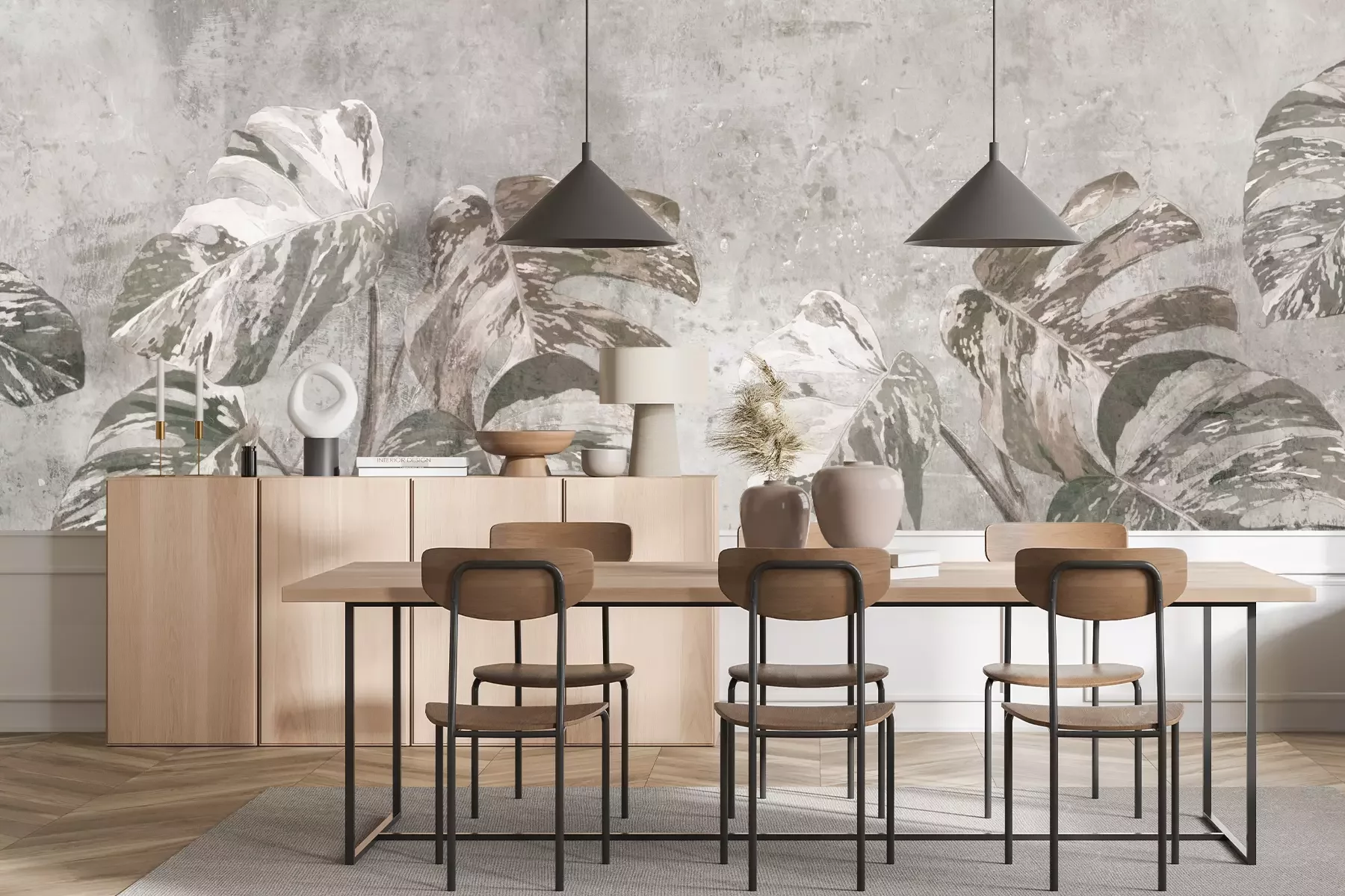 Das Material Standard ist ein hochwertiges Latexmaterial mit einer glatten, matten Oberfläche. Durch den Einsatz von HP-Latex-Drucktechnologie sind die Farben satt, langlebig und UV-beständig. So bleibt das Muster über Jahre hinweg makellos schön. Die verschmutzte Oberfläche dieses Materials kann sanft mit einem trockenen Tuch abgewischt werden. Die maximale Breite einer einzelnen Bahn beträgt 95 cm oder 105 cm – je nach Breite der bestellten Fototapete. Bei Fototapeten mit größeren Abmessungen besteht der Ausdruck aus mehreren gleich großen Tapetenbahnen. Die Fototapete wird auf Stoß angebracht, wodurch die Fugen nahezu unsichtbar sind.