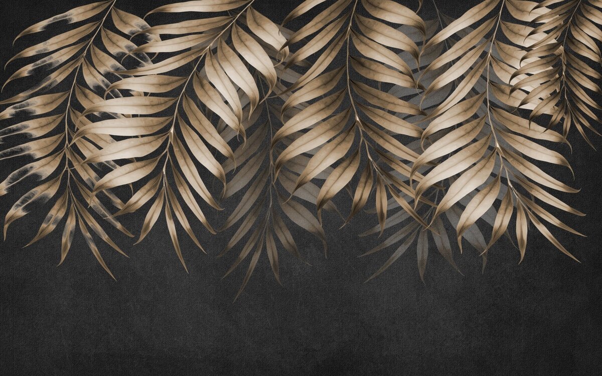 Fototapete: Große Palmblätter auf schwarzem Hintergrund