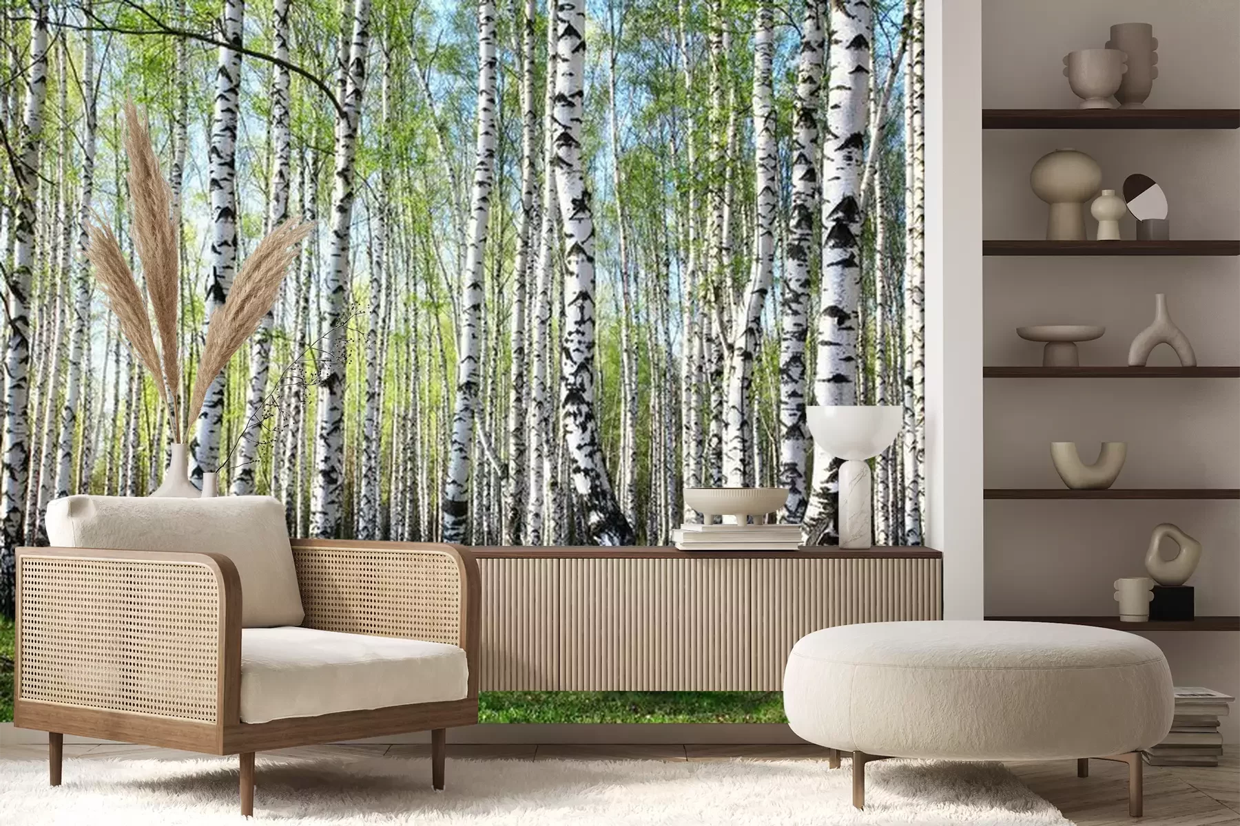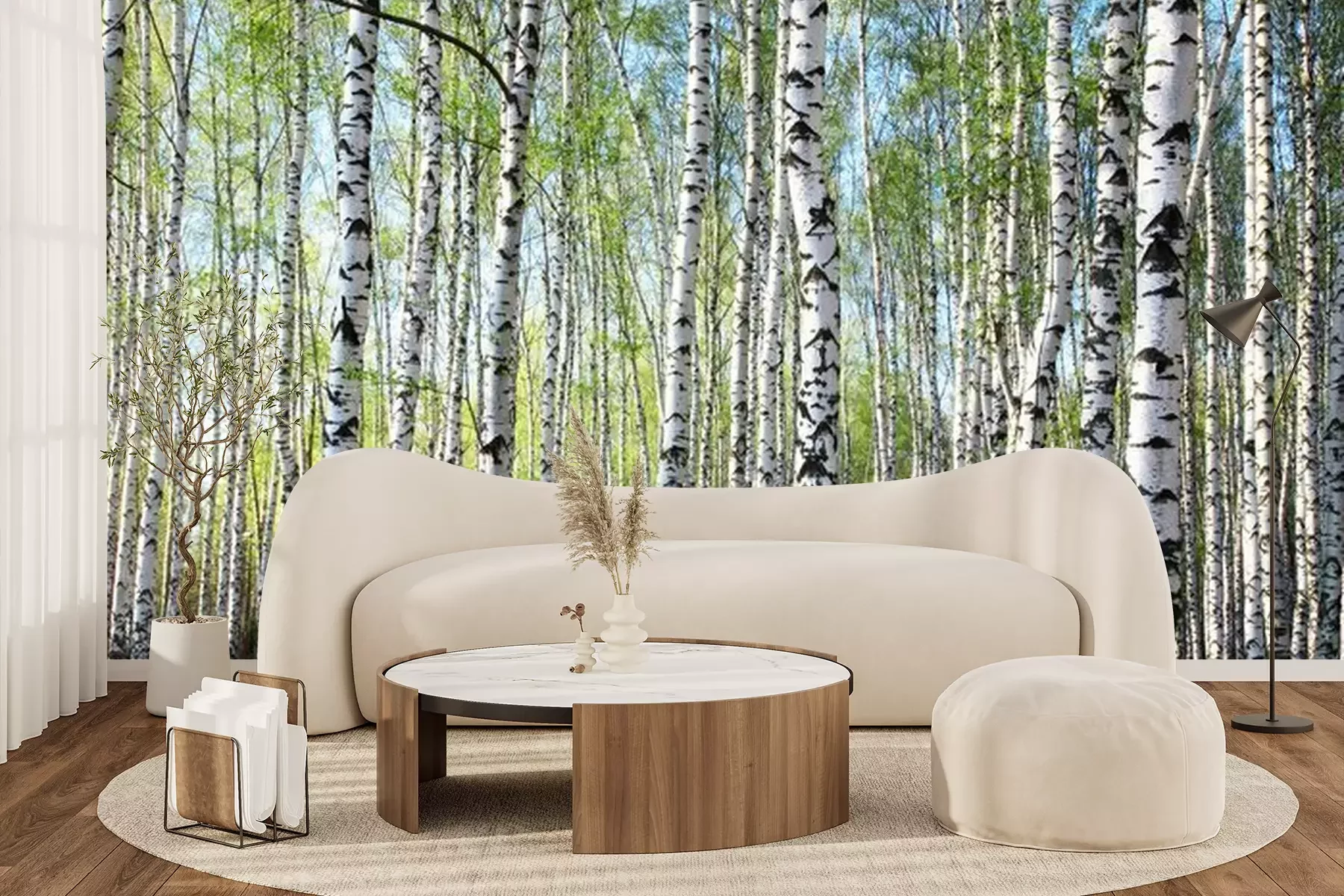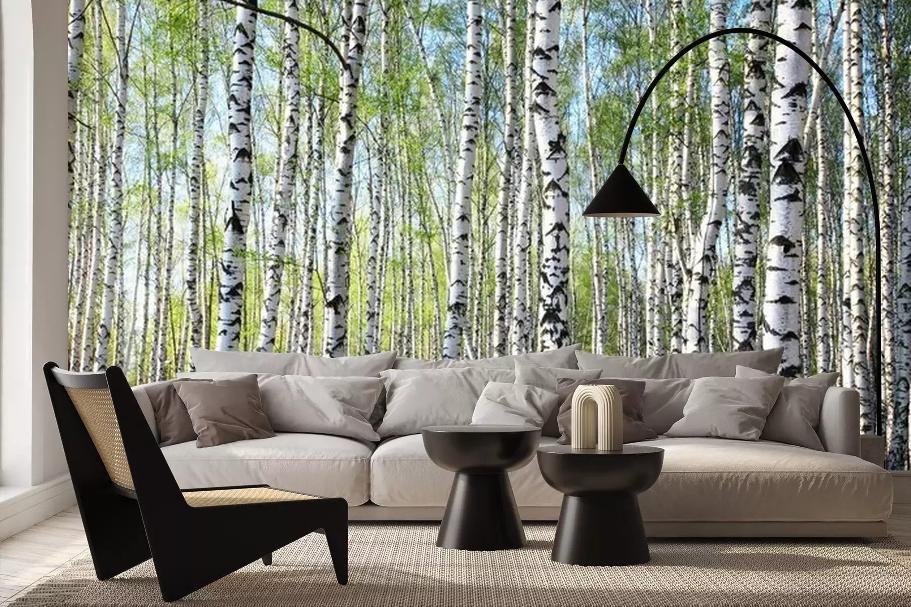 Schöne Sommer Birkenhain in der AbendsonneFototapete