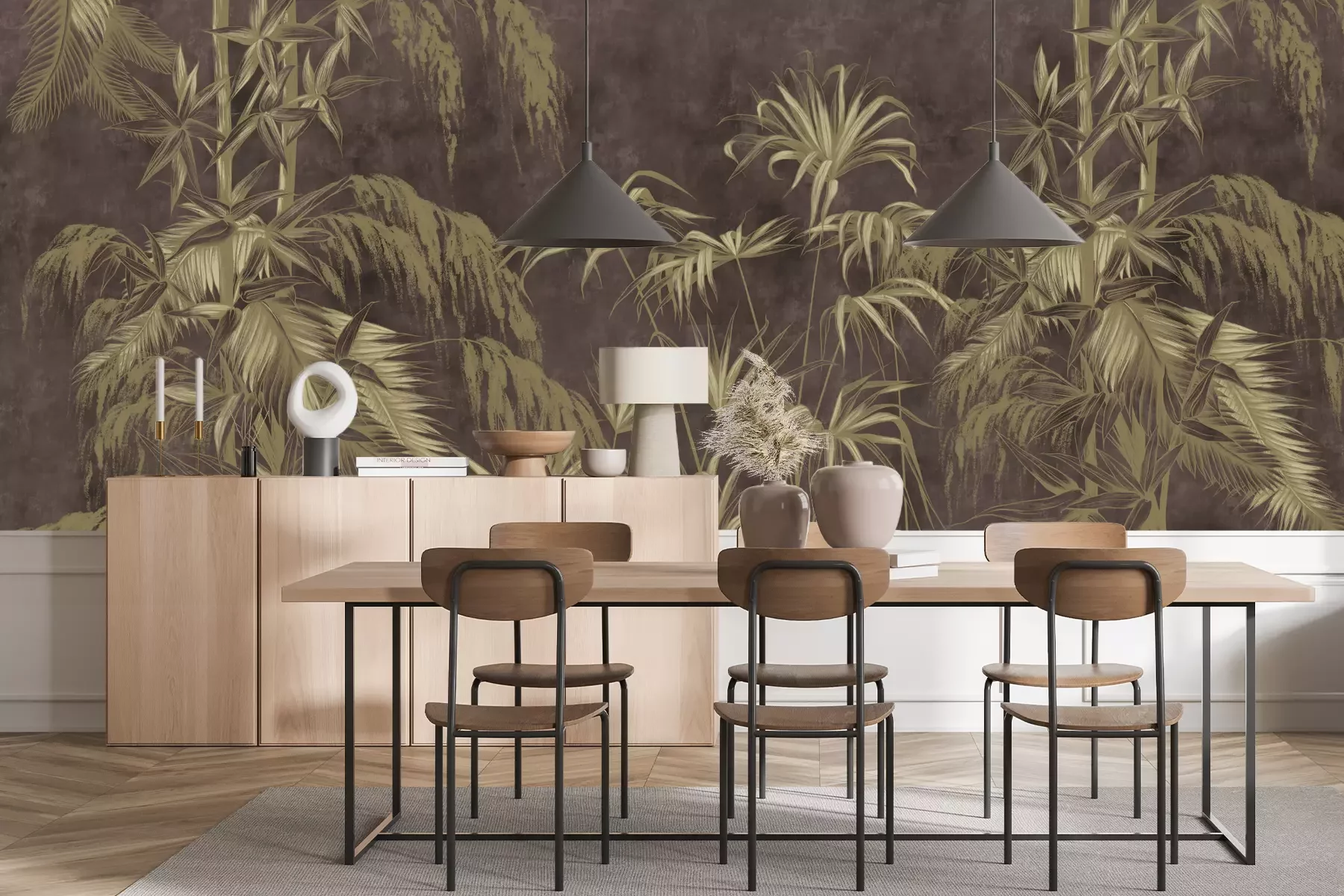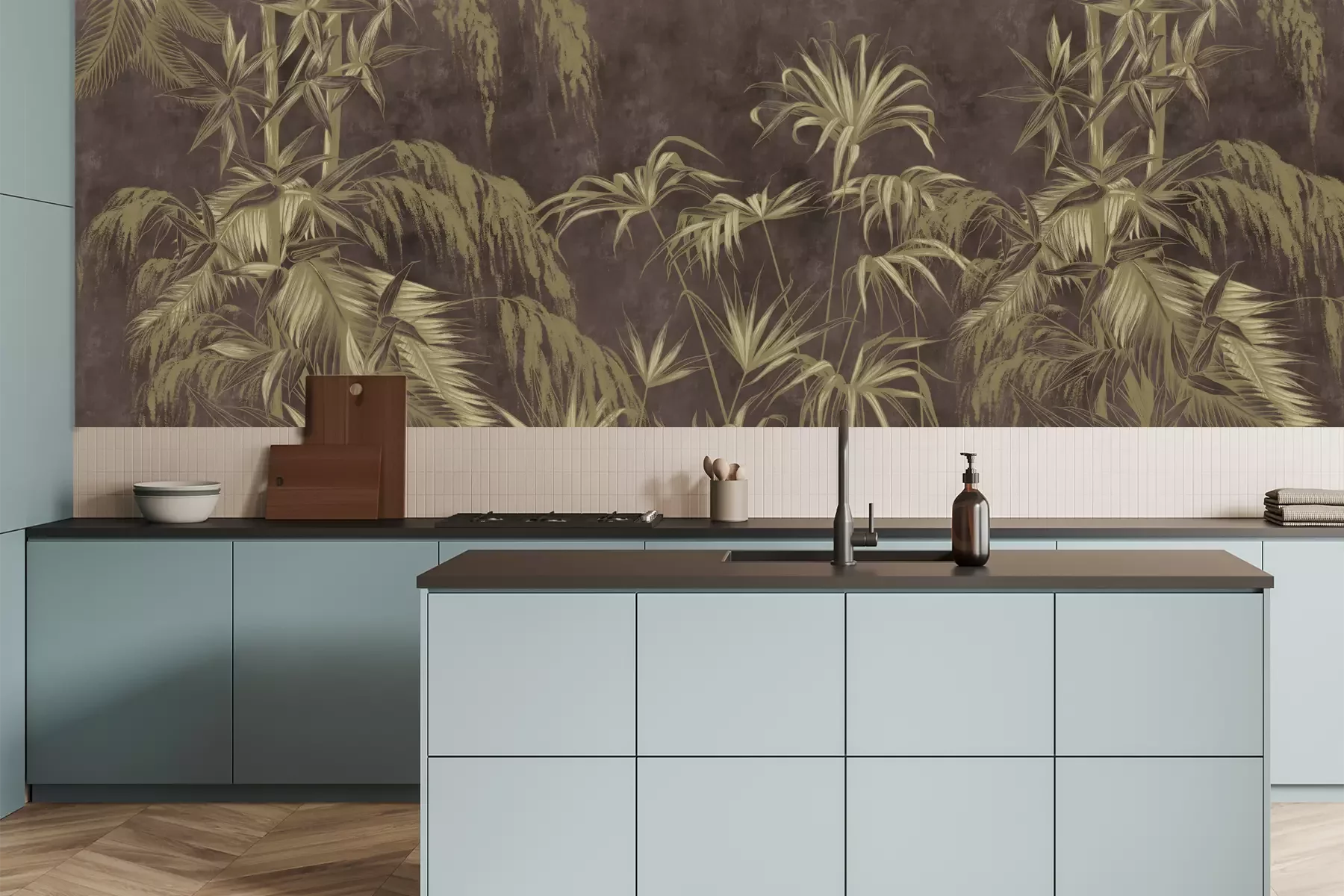 Das Material Premium+ besteht aus einer strukturierten Vinyl-Oberschicht und einem Trägermaterial (Vlies) mit einer Grammatur von 255 g/m², das kleine Unebenheiten der Wand zuverlässig kaschiert. Die feine Sandstruktur verleiht der Oberfläche eine luxuriöse Haptik, während das halbmatte Finish die Tiefe der Farben betont. Das Material ist dampfdurchlässig – so kann diese Fototapete auch in Küchen und Badezimmern eingesetzt werden. Die maximale Breite einer Tapetenbahn beträgt 100 cm. Bei größeren Abmessungen besteht die Fototapete aus mehreren gleich großen Bahnen. Der Kleber wird direkt auf die Wand aufgetragen, und die Fototapete wird auf Stoß angebracht, was für einen ästhetischen Effekt ohne sichtbare Fugen sorgt. Die Oberfläche ist pflegeleicht und kann bei Bedarf sanft mit einem feuchten Tuch abgewischt werden.