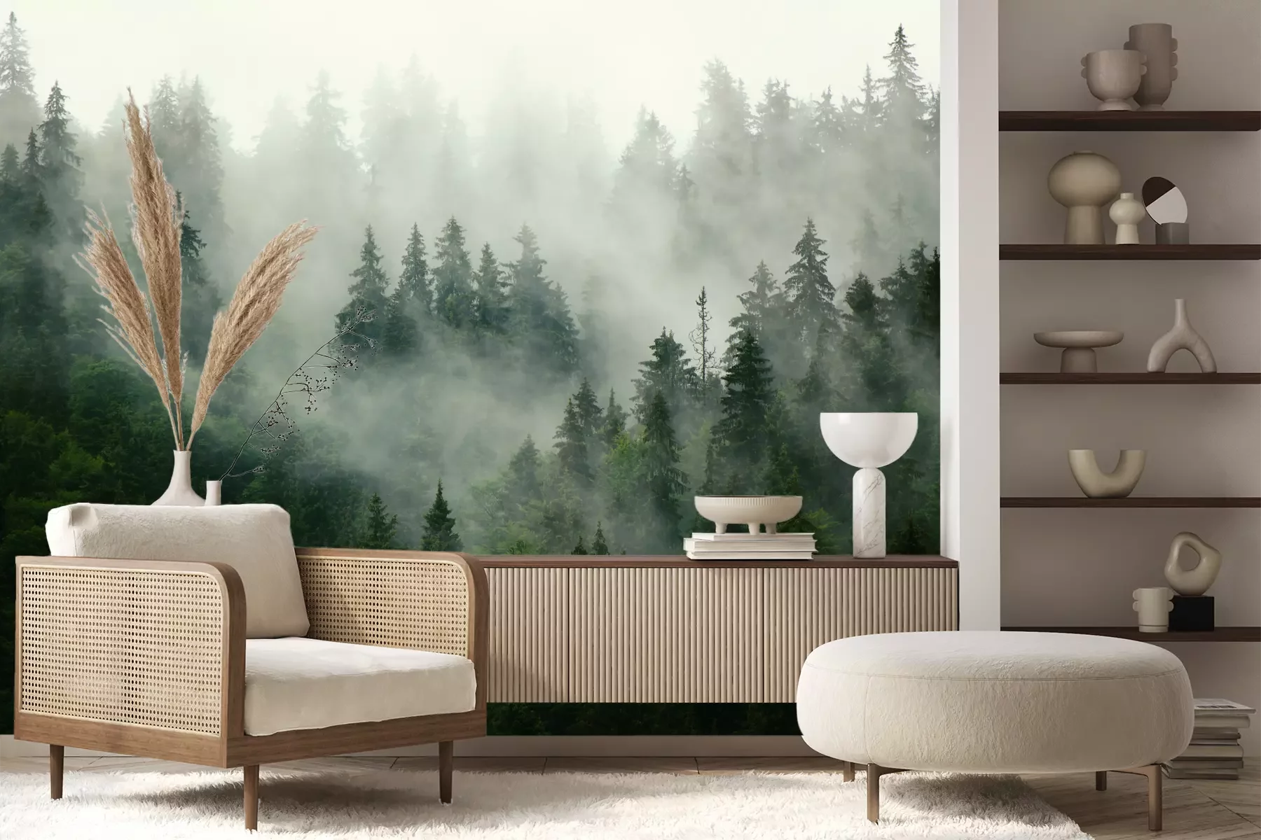 Das Material Premium+ besteht aus einer strukturierten Vinyl-Oberschicht und einem Trägermaterial (Vlies) mit einer Grammatur von 255 g/m², das kleine Unebenheiten der Wand zuverlässig kaschiert. Die feine Sandstruktur verleiht der Oberfläche eine luxuriöse Haptik, während das halbmatte Finish die Tiefe der Farben betont. Das Material ist dampfdurchlässig – so kann diese Fototapete auch in Küchen und Badezimmern eingesetzt werden. Die maximale Breite einer Tapetenbahn beträgt 100 cm. Bei größeren Abmessungen besteht die Fototapete aus mehreren gleich großen Bahnen. Der Kleber wird direkt auf die Wand aufgetragen, und die Fototapete wird auf Stoß angebracht, was für einen ästhetischen Effekt ohne sichtbare Fugen sorgt. Die Oberfläche ist pflegeleicht und kann bei Bedarf sanft mit einem feuchten Tuch abgewischt werden.