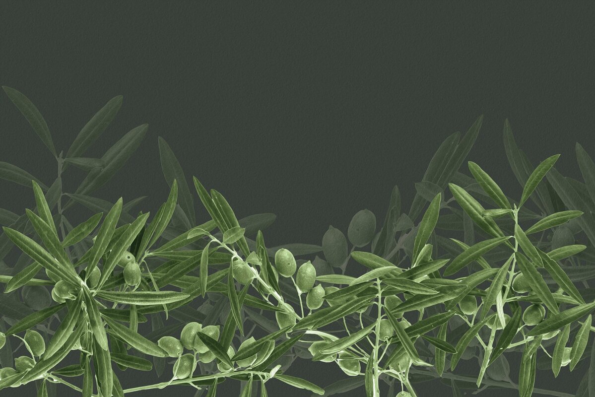 Fototapete: Grüne Olivenzweige vor dunklem Hintergrund
