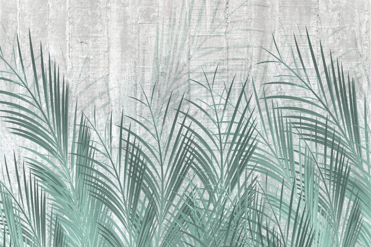 Fototapete: Grüne Palmblätter auf grauem Betongrund
