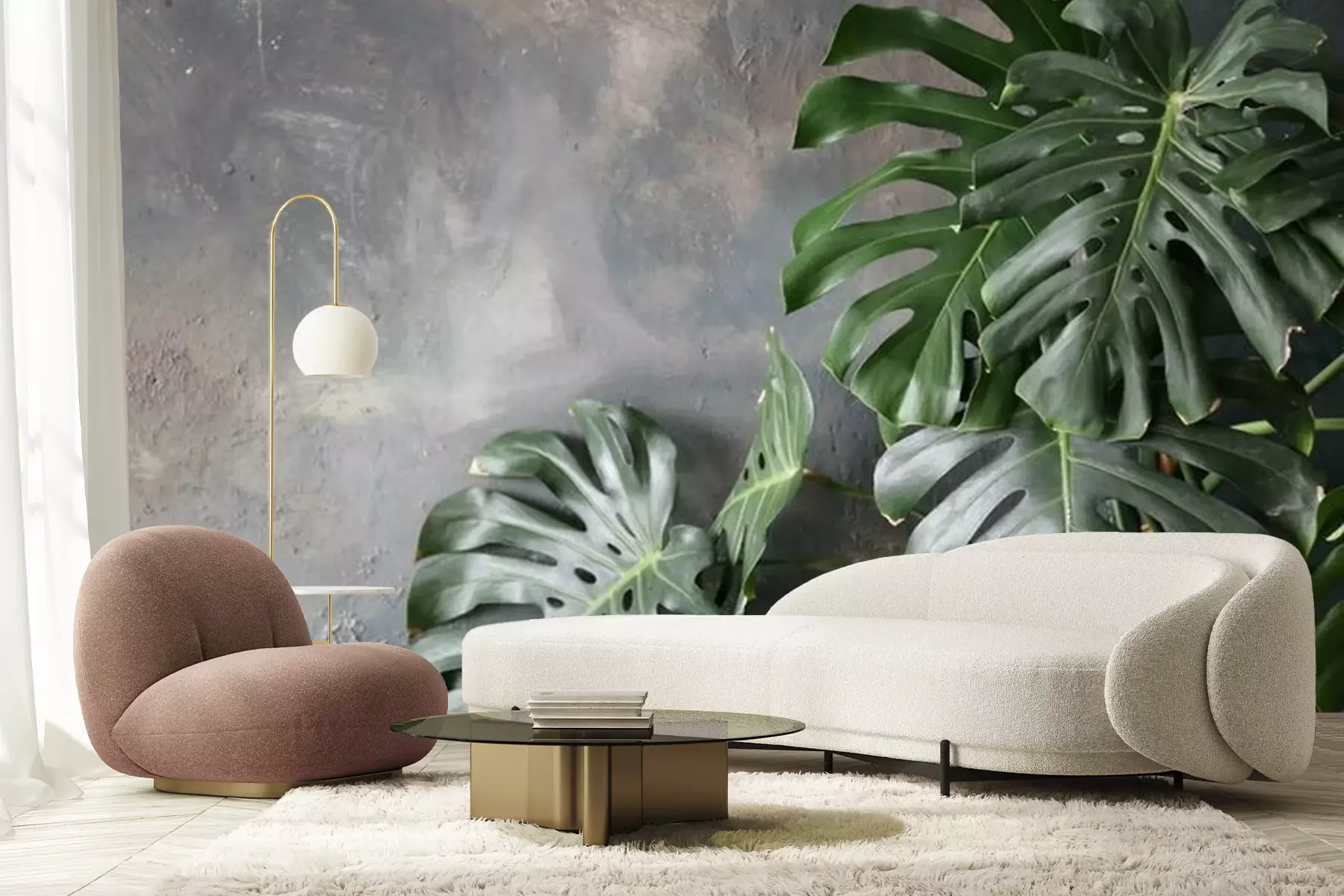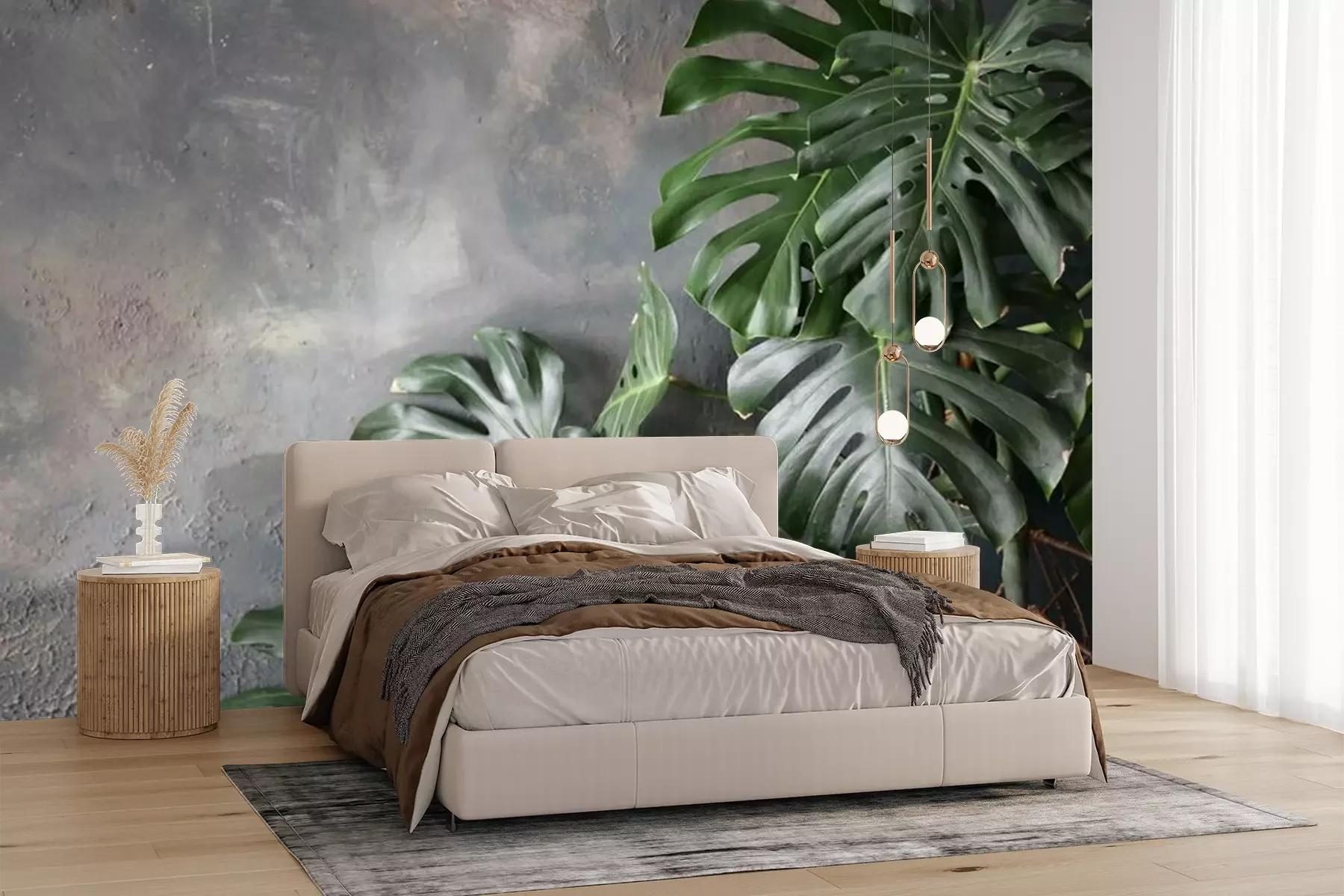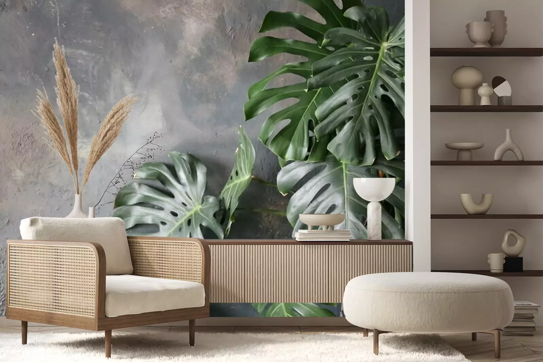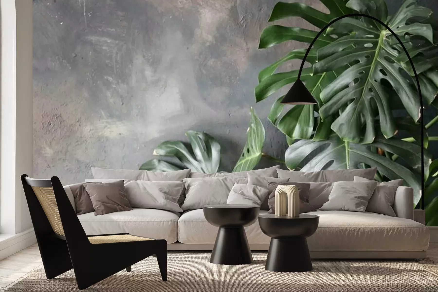 Fototapete Grüne Pflanzen auf grauem Hintergrund