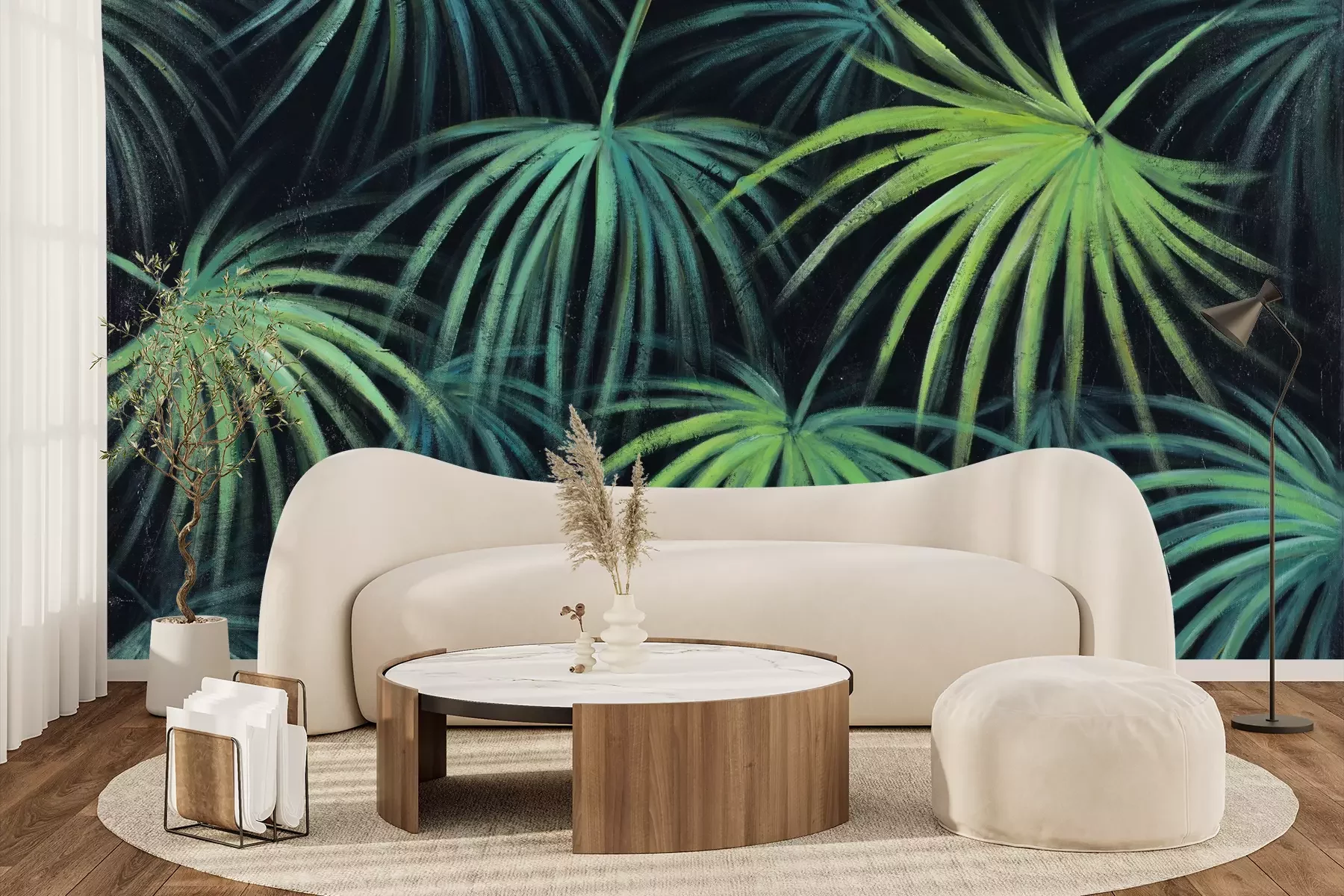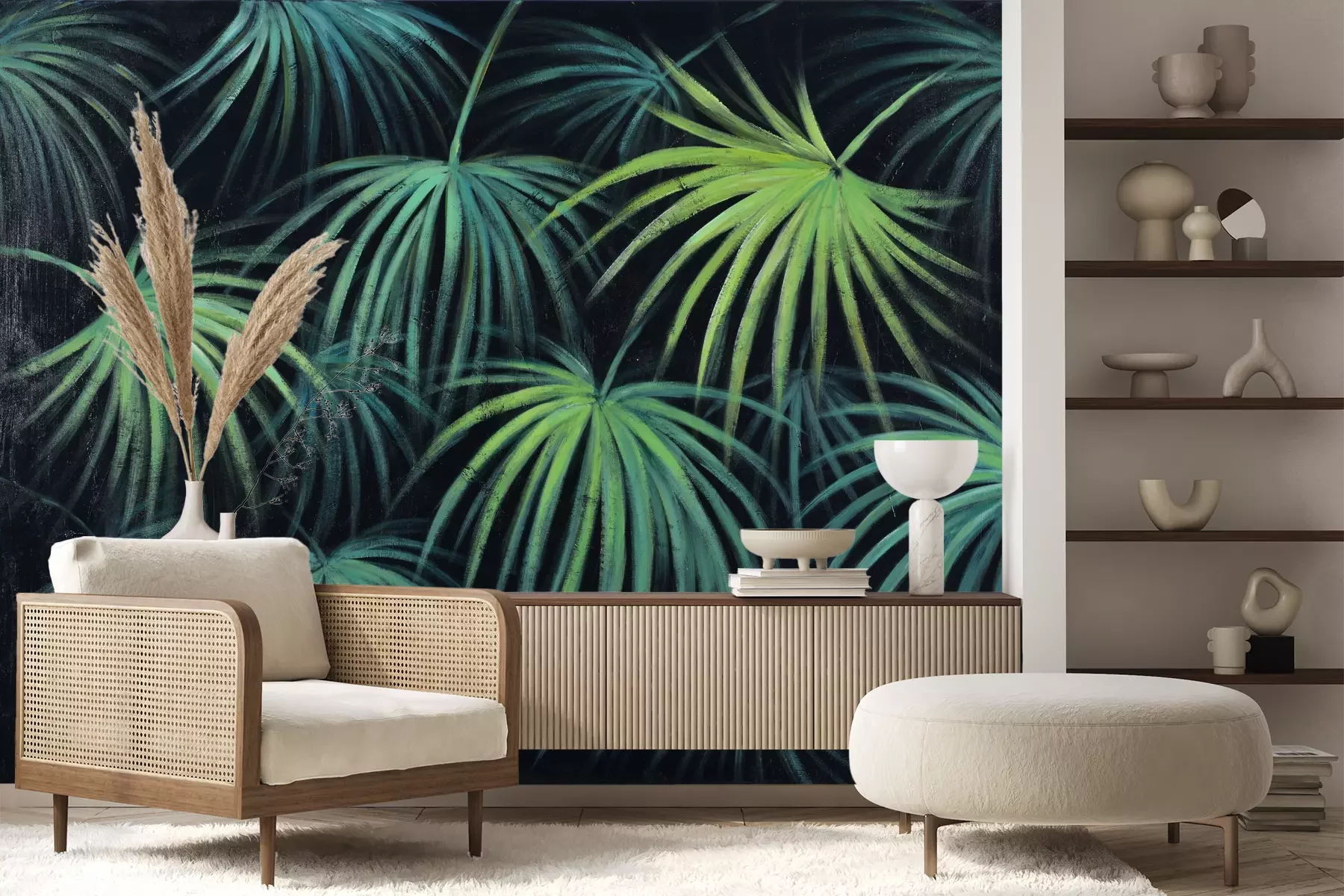 Das Material Premium+ besteht aus einer strukturierten Vinyl-Oberschicht und einem Trägermaterial (Vlies) mit einer Grammatur von 255 g/m², das kleine Unebenheiten der Wand zuverlässig kaschiert. Die feine Sandstruktur verleiht der Oberfläche eine luxuriöse Haptik, während das halbmatte Finish die Tiefe der Farben betont. Das Material ist dampfdurchlässig – so kann diese Fototapete auch in Küchen und Badezimmern eingesetzt werden. Die maximale Breite einer Tapetenbahn beträgt 100 cm. Bei größeren Abmessungen besteht die Fototapete aus mehreren gleich großen Bahnen. Der Kleber wird direkt auf die Wand aufgetragen, und die Fototapete wird auf Stoß angebracht, was für einen ästhetischen Effekt ohne sichtbare Fugen sorgt. Die Oberfläche ist pflegeleicht und kann bei Bedarf sanft mit einem feuchten Tuch abgewischt werden.