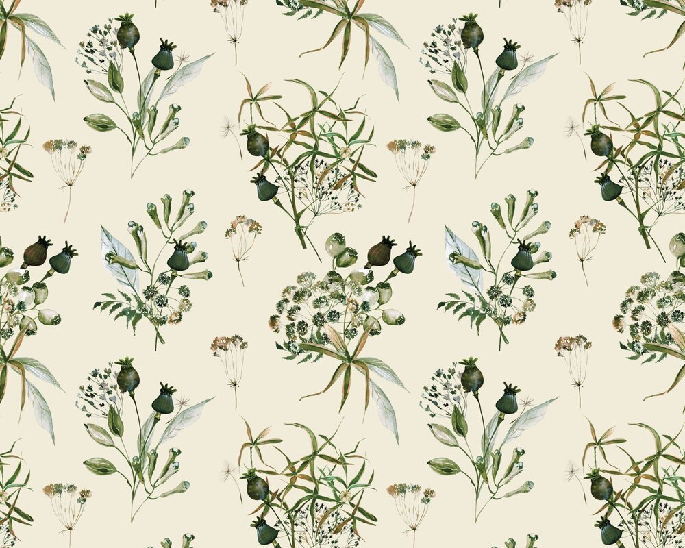 Fototapete: Grüne Zweige von Wildblumen und Pflanzen