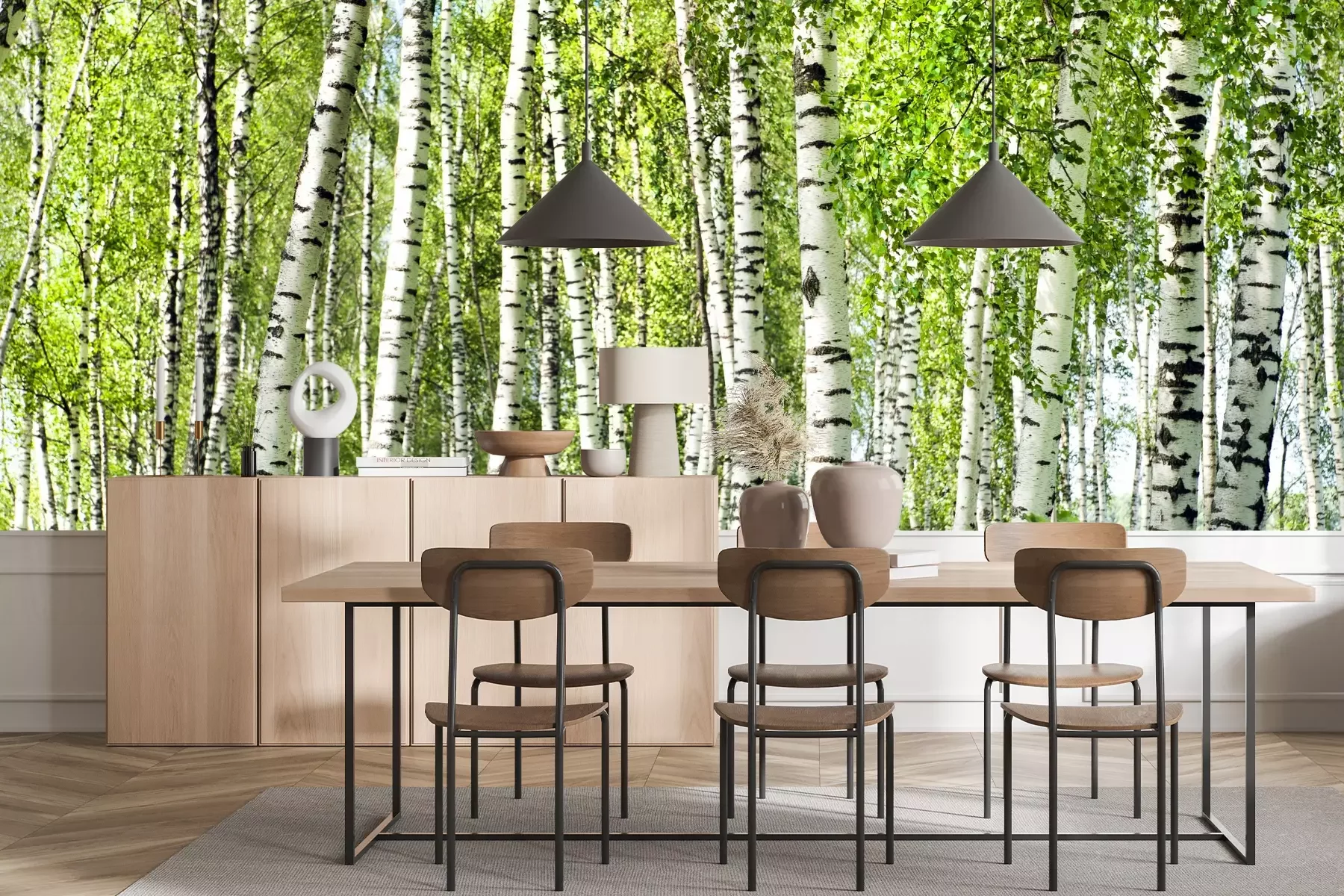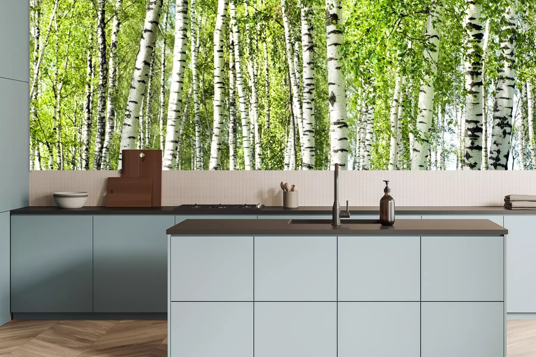 Fototapete Grüner Birkenwald