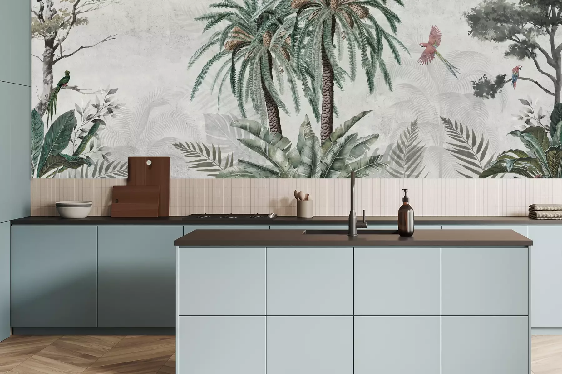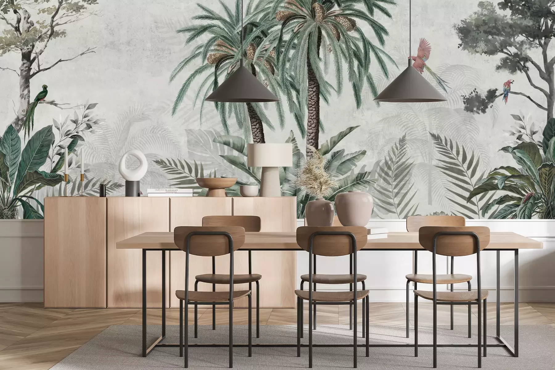 Das Material Premium+ besteht aus einer strukturierten Vinyl-Oberschicht und einem Trägermaterial (Vlies) mit einer Grammatur von 255 g/m², das kleine Unebenheiten der Wand zuverlässig kaschiert. Die feine Sandstruktur verleiht der Oberfläche eine luxuriöse Haptik, während das halbmatte Finish die Tiefe der Farben betont. Das Material ist dampfdurchlässig – so kann diese Fototapete auch in Küchen und Badezimmern eingesetzt werden. Die maximale Breite einer Tapetenbahn beträgt 100 cm. Bei größeren Abmessungen besteht die Fototapete aus mehreren gleich großen Bahnen. Der Kleber wird direkt auf die Wand aufgetragen, und die Fototapete wird auf Stoß angebracht, was für einen ästhetischen Effekt ohne sichtbare Fugen sorgt. Die Oberfläche ist pflegeleicht und kann bei Bedarf sanft mit einem feuchten Tuch abgewischt werden.