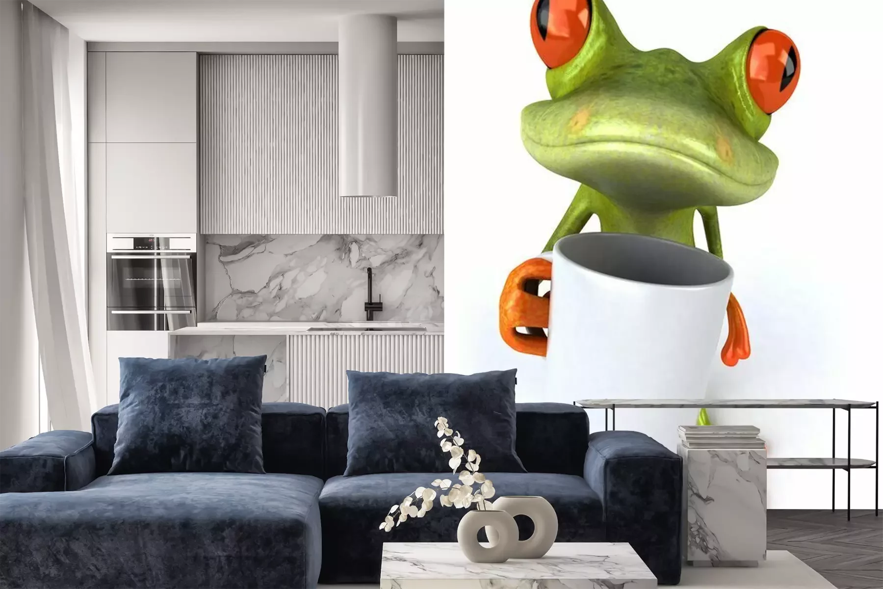 Fototapete Grüner Frosch mit Kaffeebecher