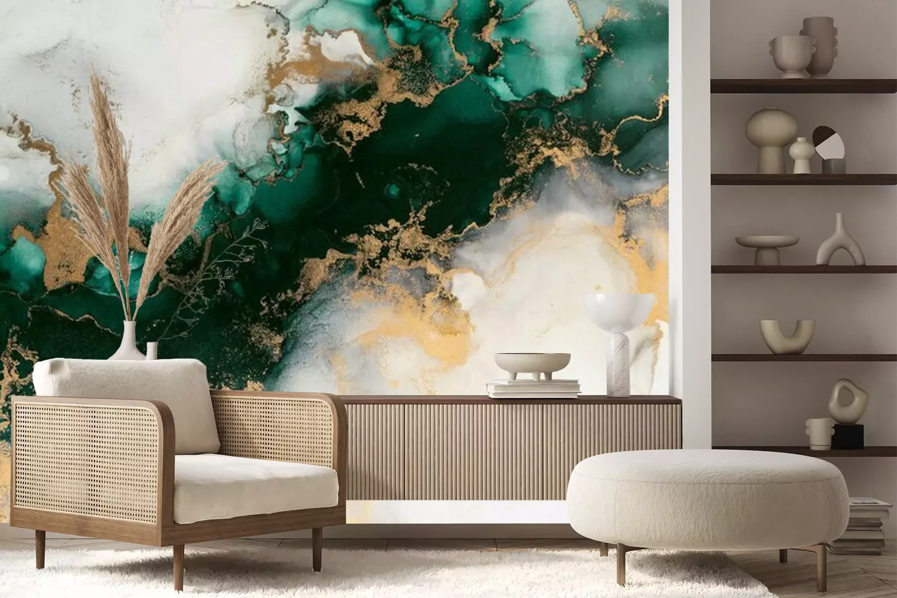 Das Material Premium+ besteht aus einer strukturierten Vinyl-Oberschicht und einem Trägermaterial (Vlies) mit einer Grammatur von 255 g/m², das kleine Unebenheiten der Wand zuverlässig kaschiert. Die feine Sandstruktur verleiht der Oberfläche eine luxuriöse Haptik, während das halbmatte Finish die Tiefe der Farben betont. Das Material ist dampfdurchlässig – so kann diese Fototapete auch in Küchen und Badezimmern eingesetzt werden. Die maximale Breite einer Tapetenbahn beträgt 100 cm. Bei größeren Abmessungen besteht die Fototapete aus mehreren gleich großen Bahnen. Der Kleber wird direkt auf die Wand aufgetragen, und die Fototapete wird auf Stoß angebracht, was für einen ästhetischen Effekt ohne sichtbare Fugen sorgt. Die Oberfläche ist pflegeleicht und kann bei Bedarf sanft mit einem feuchten Tuch abgewischt werden.
