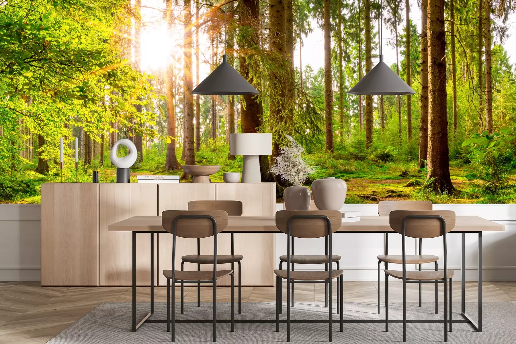 Das Material Premium+ besteht aus einer strukturierten Vinyl-Oberschicht und einem Trägermaterial (Vlies) mit einer Grammatur von 255 g/m², das kleine Unebenheiten der Wand zuverlässig kaschiert. Die feine Sandstruktur verleiht der Oberfläche eine luxuriöse Haptik, während das halbmatte Finish die Tiefe der Farben betont. Das Material ist dampfdurchlässig – so kann diese Fototapete auch in Küchen und Badezimmern eingesetzt werden. Die maximale Breite einer Tapetenbahn beträgt 100 cm. Bei größeren Abmessungen besteht die Fototapete aus mehreren gleich großen Bahnen. Der Kleber wird direkt auf die Wand aufgetragen, und die Fototapete wird auf Stoß angebracht, was für einen ästhetischen Effekt ohne sichtbare Fugen sorgt. Die Oberfläche ist pflegeleicht und kann bei Bedarf sanft mit einem feuchten Tuch abgewischt werden.