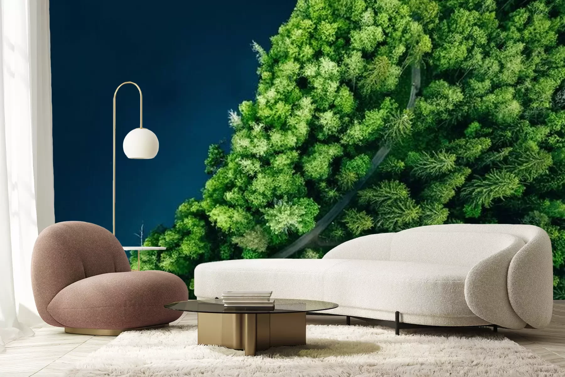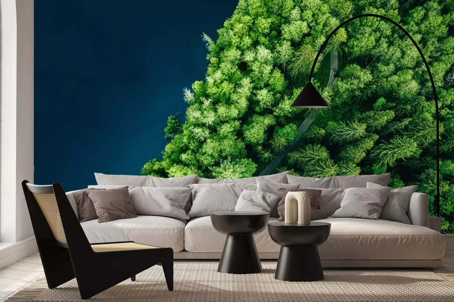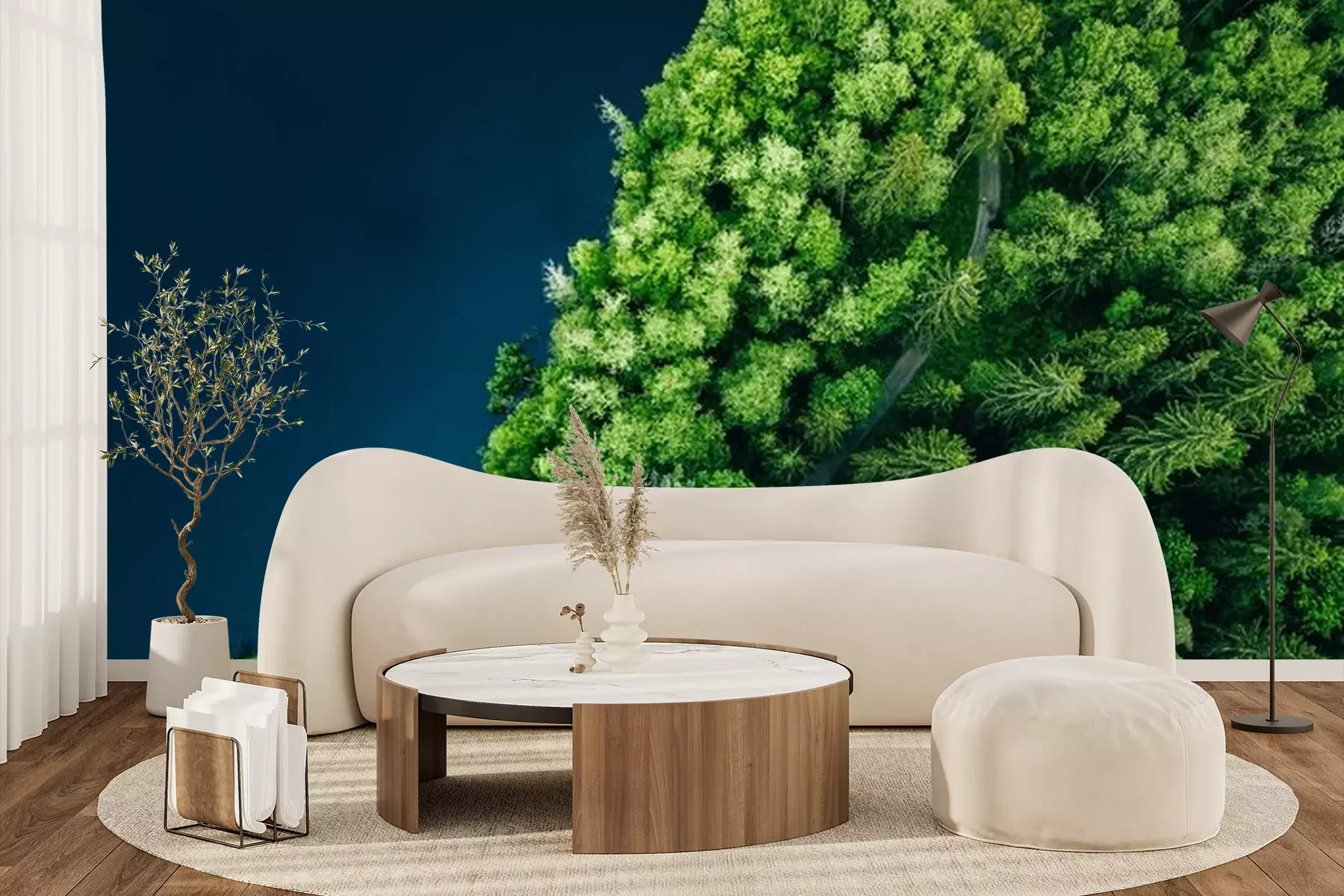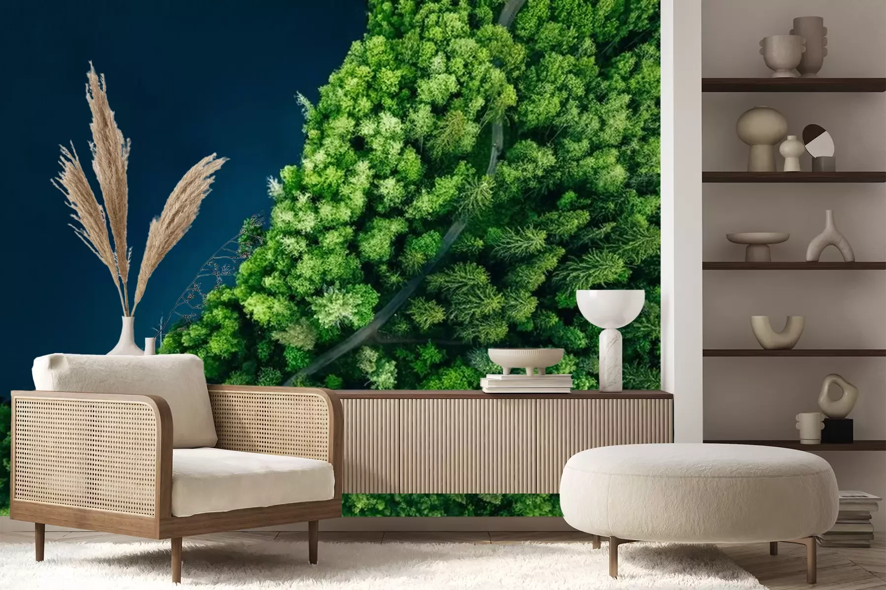 Fototapete Grüner Wald am See aus der Vogelperspektive
