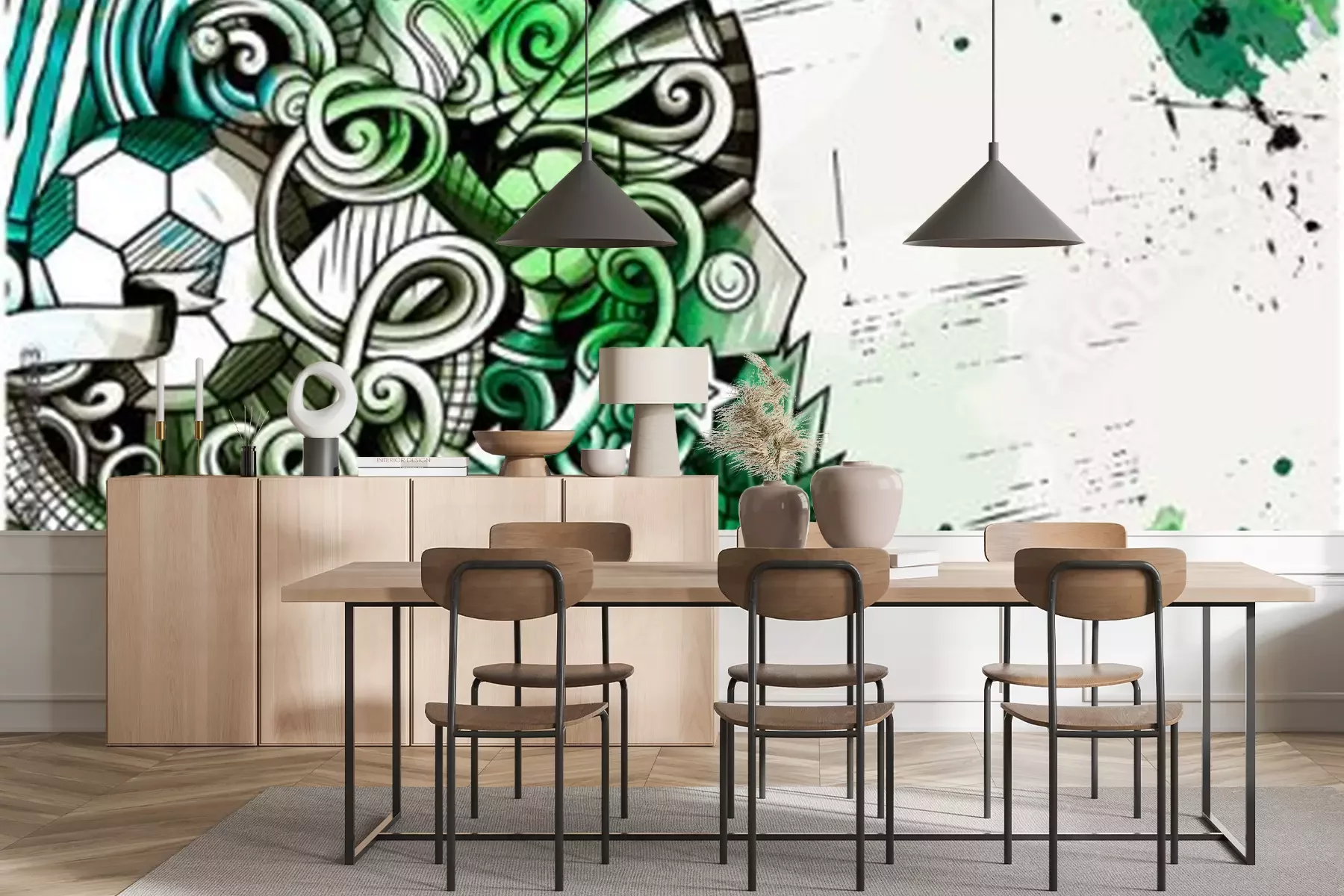 Fototapete Grünes abstraktes Muster mit Fußballsymbolen