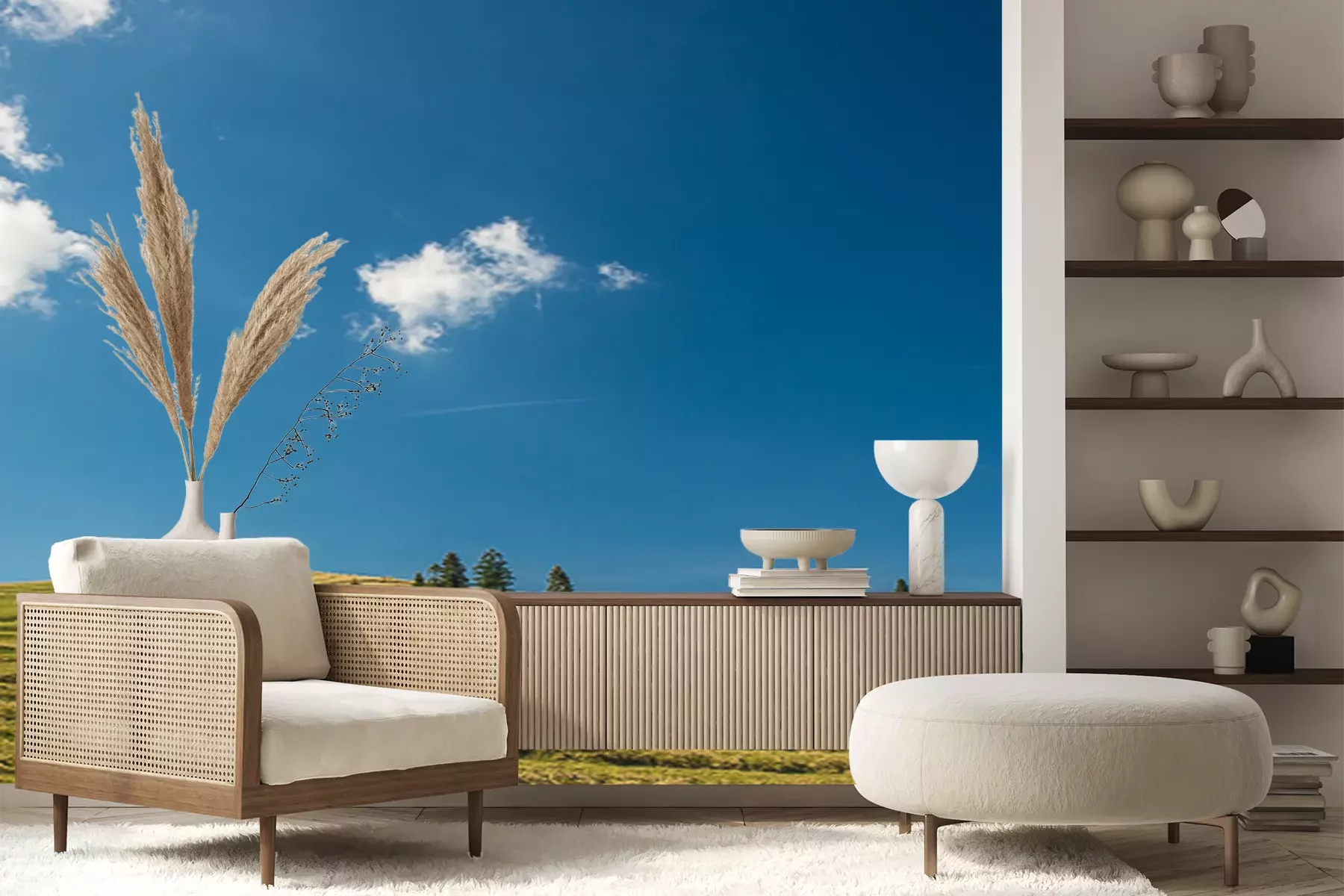Das Material Premium+ besteht aus einer strukturierten Vinyl-Oberschicht und einem Trägermaterial (Vlies) mit einer Grammatur von 255 g/m², das kleine Unebenheiten der Wand zuverlässig kaschiert. Die feine Sandstruktur verleiht der Oberfläche eine luxuriöse Haptik, während das halbmatte Finish die Tiefe der Farben betont. Das Material ist dampfdurchlässig – so kann diese Fototapete auch in Küchen und Badezimmern eingesetzt werden. Die maximale Breite einer Tapetenbahn beträgt 100 cm. Bei größeren Abmessungen besteht die Fototapete aus mehreren gleich großen Bahnen. Der Kleber wird direkt auf die Wand aufgetragen, und die Fototapete wird auf Stoß angebracht, was für einen ästhetischen Effekt ohne sichtbare Fugen sorgt. Die Oberfläche ist pflegeleicht und kann bei Bedarf sanft mit einem feuchten Tuch abgewischt werden.
