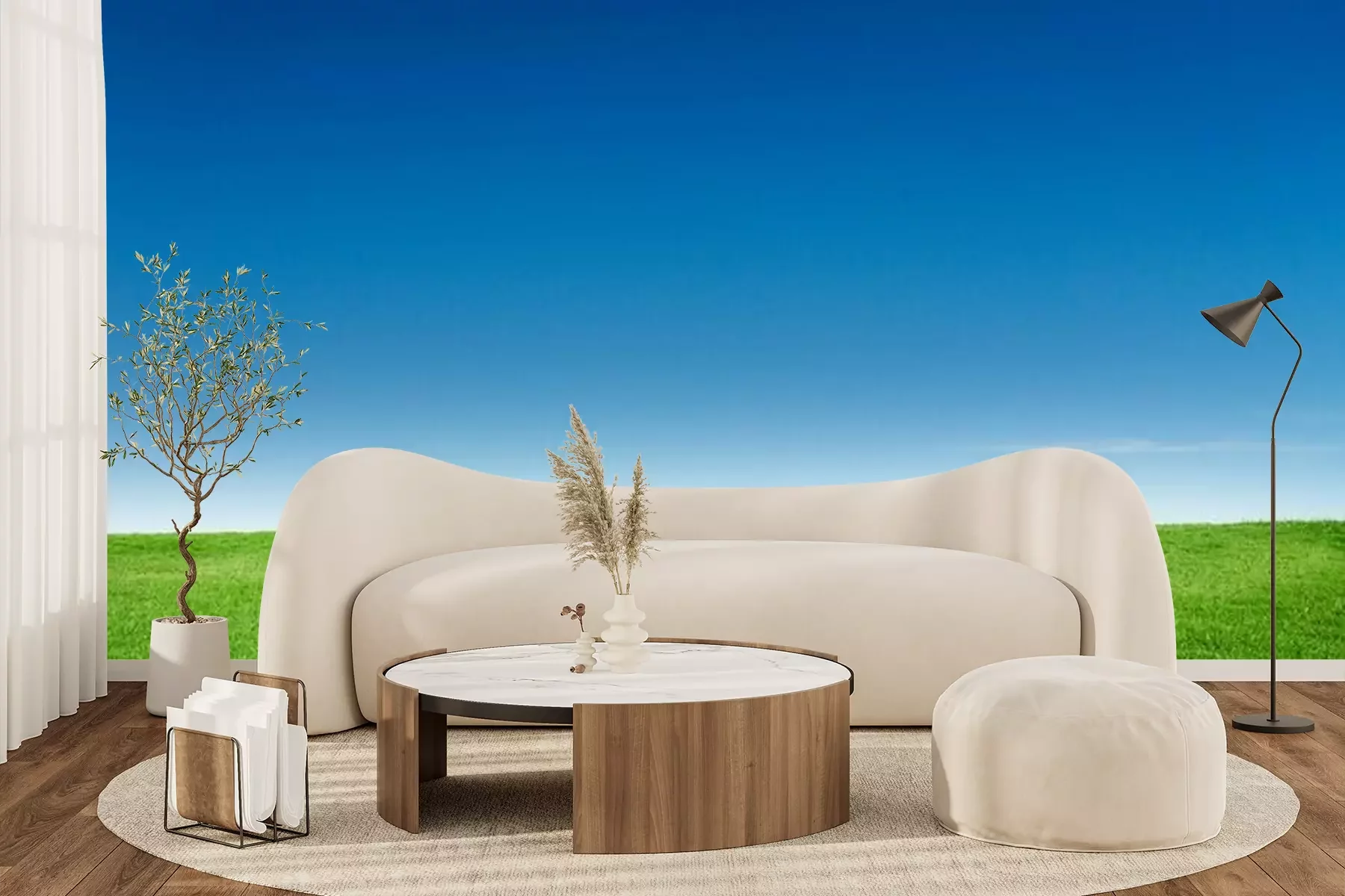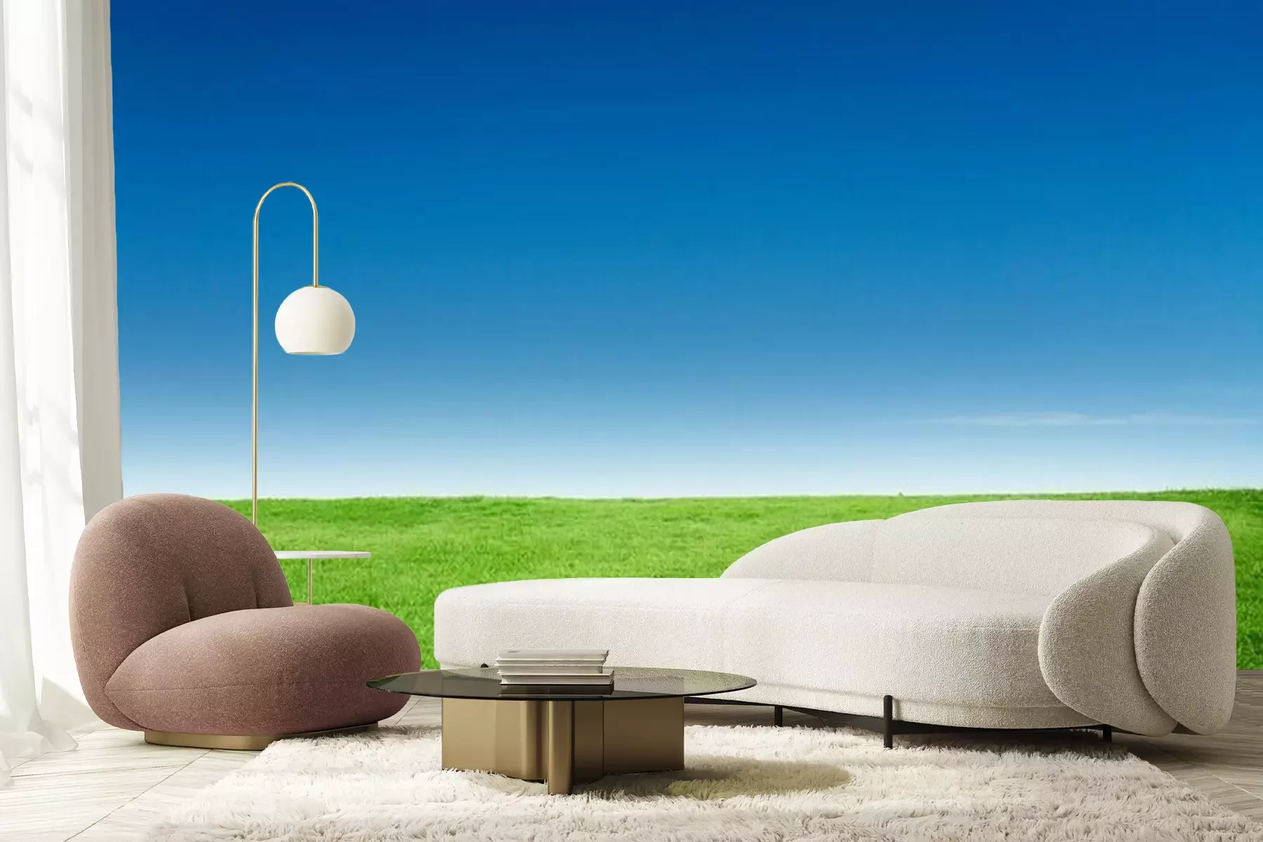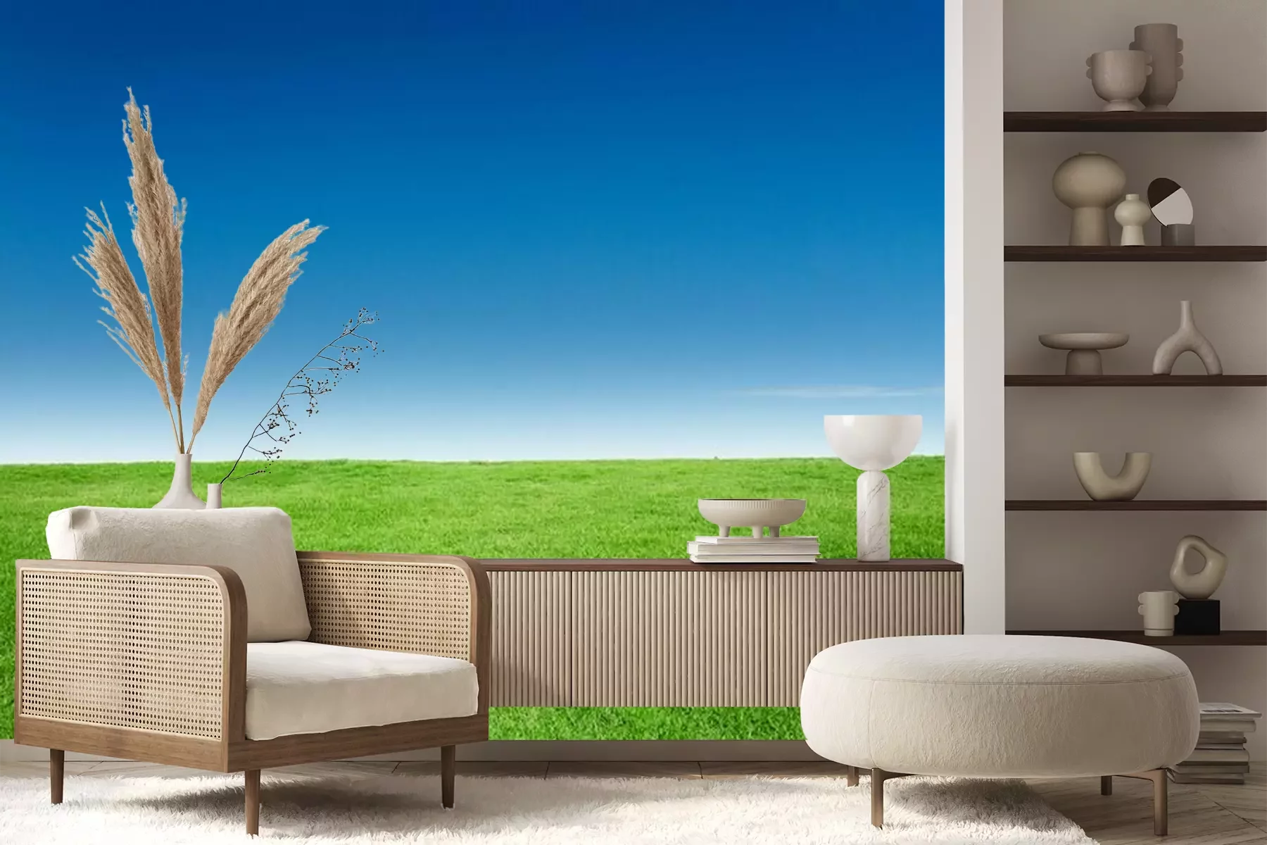 Fototapete Grünes Gras und Himmel im Hintergrund