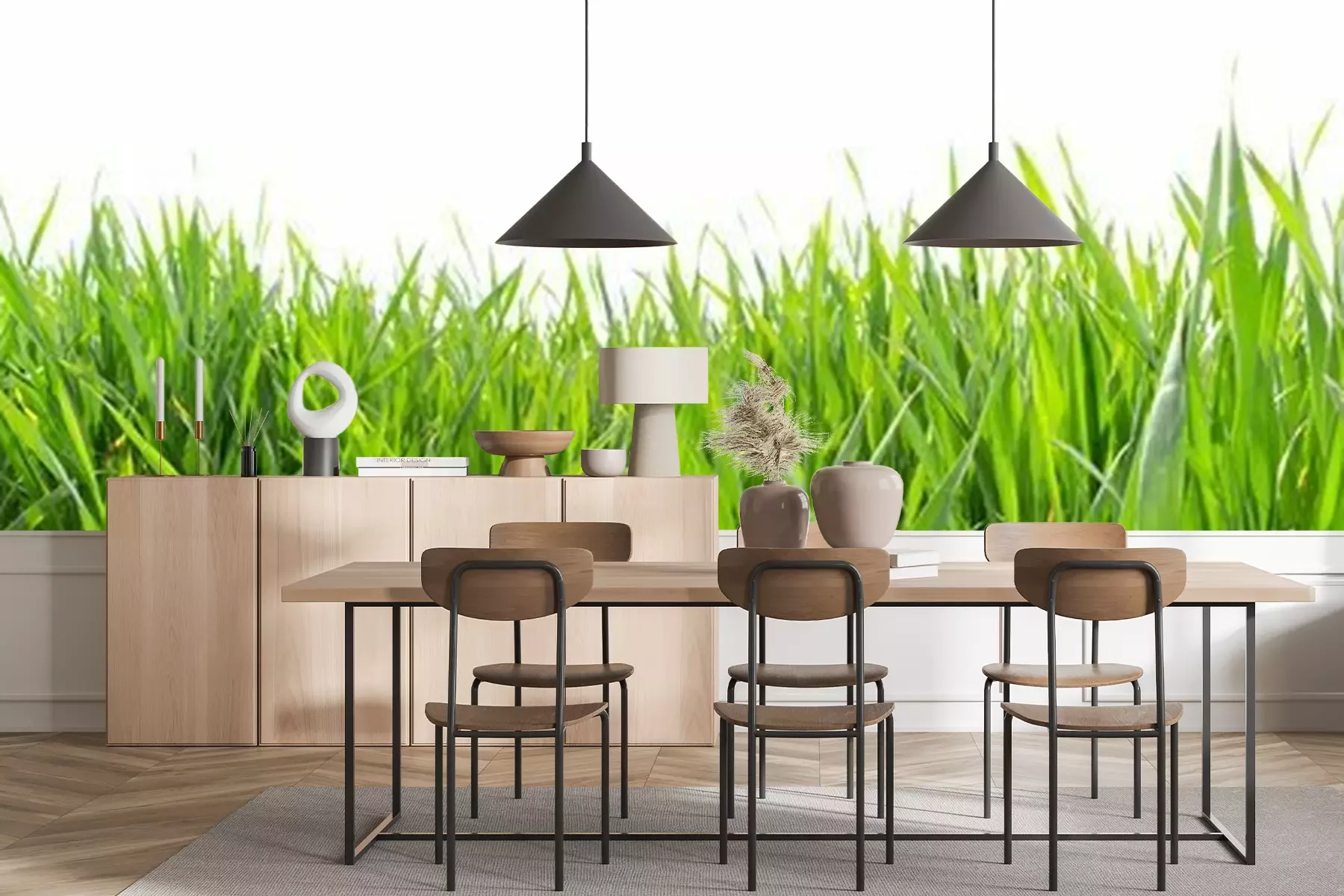 Das Material Standard ist ein hochwertiges Latexmaterial mit einer glatten, matten Oberfläche. Durch den Einsatz von HP-Latex-Drucktechnologie sind die Farben satt, langlebig und UV-beständig. So bleibt das Muster über Jahre hinweg makellos schön. Die verschmutzte Oberfläche dieses Materials kann sanft mit einem trockenen Tuch abgewischt werden. Die maximale Breite einer einzelnen Bahn beträgt 95 cm oder 105 cm – je nach Breite der bestellten Fototapete. Bei Fototapeten mit größeren Abmessungen besteht der Ausdruck aus mehreren gleich großen Tapetenbahnen. Die Fototapete wird auf Stoß angebracht, wodurch die Fugen nahezu unsichtbar sind.