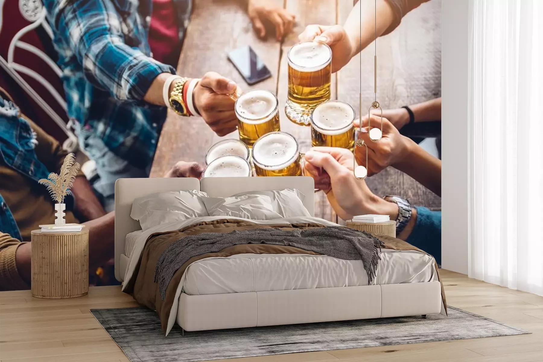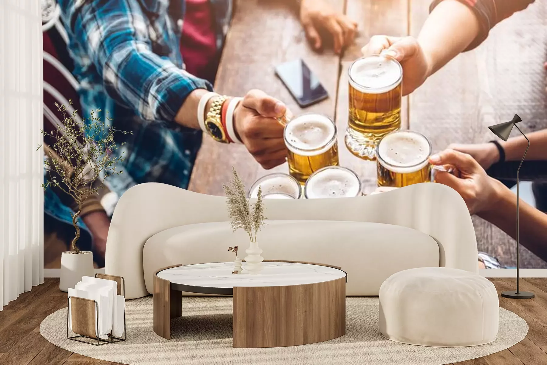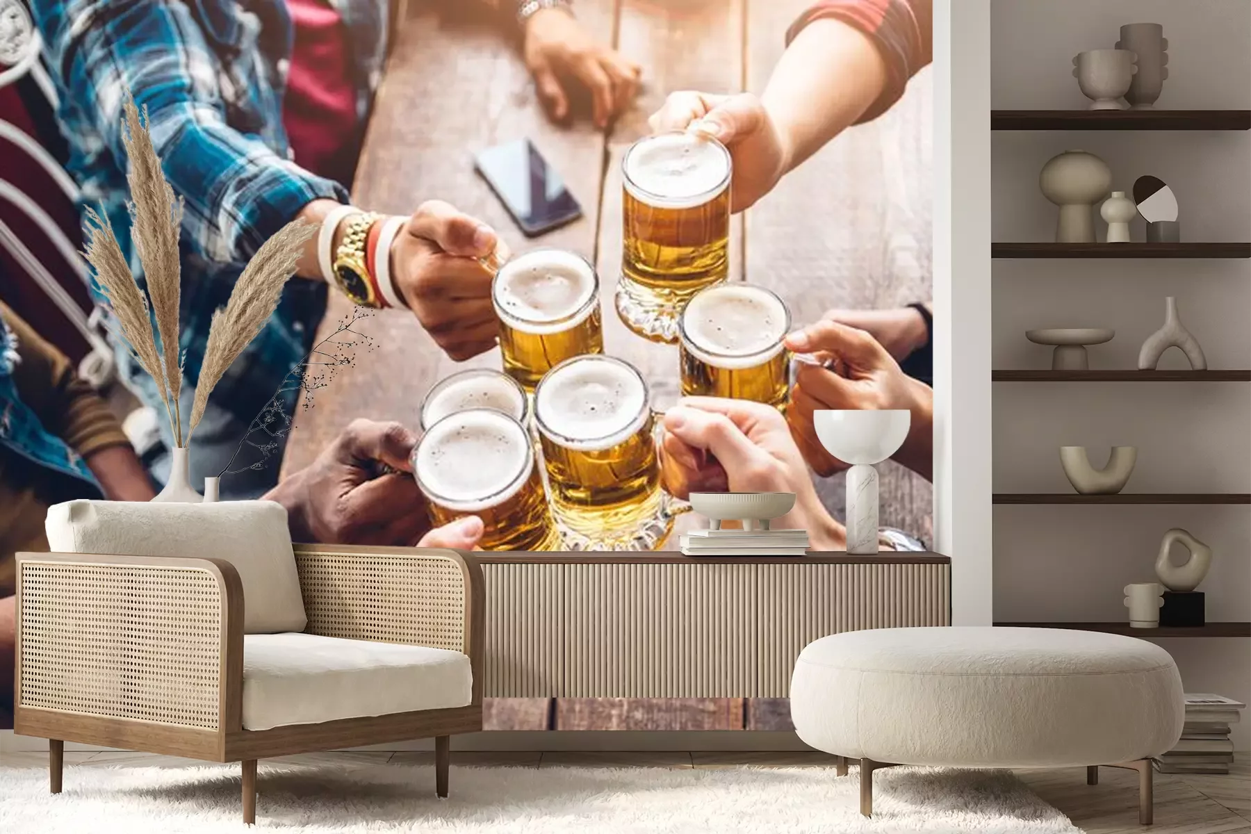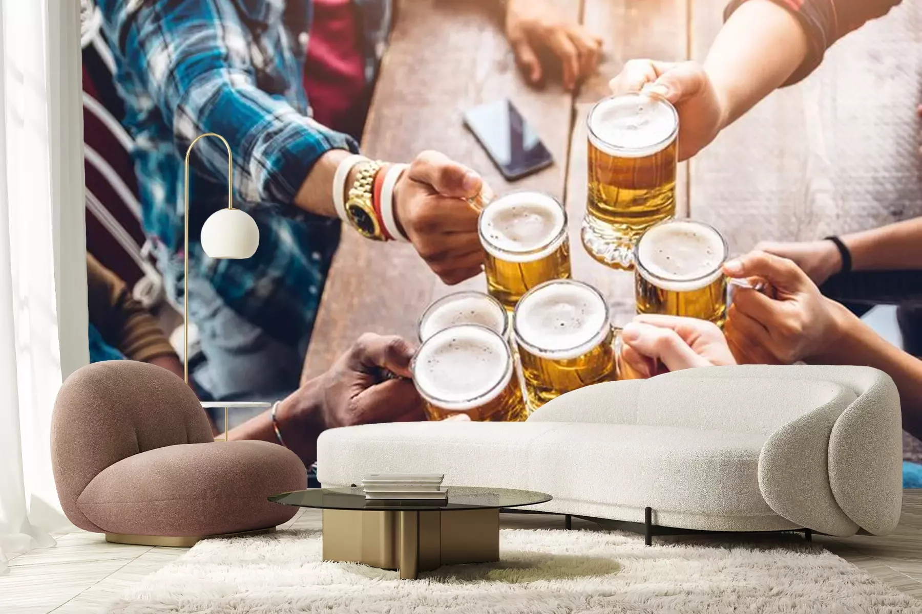 Fototapete Gruppe von Freunden und Bierkrüge
