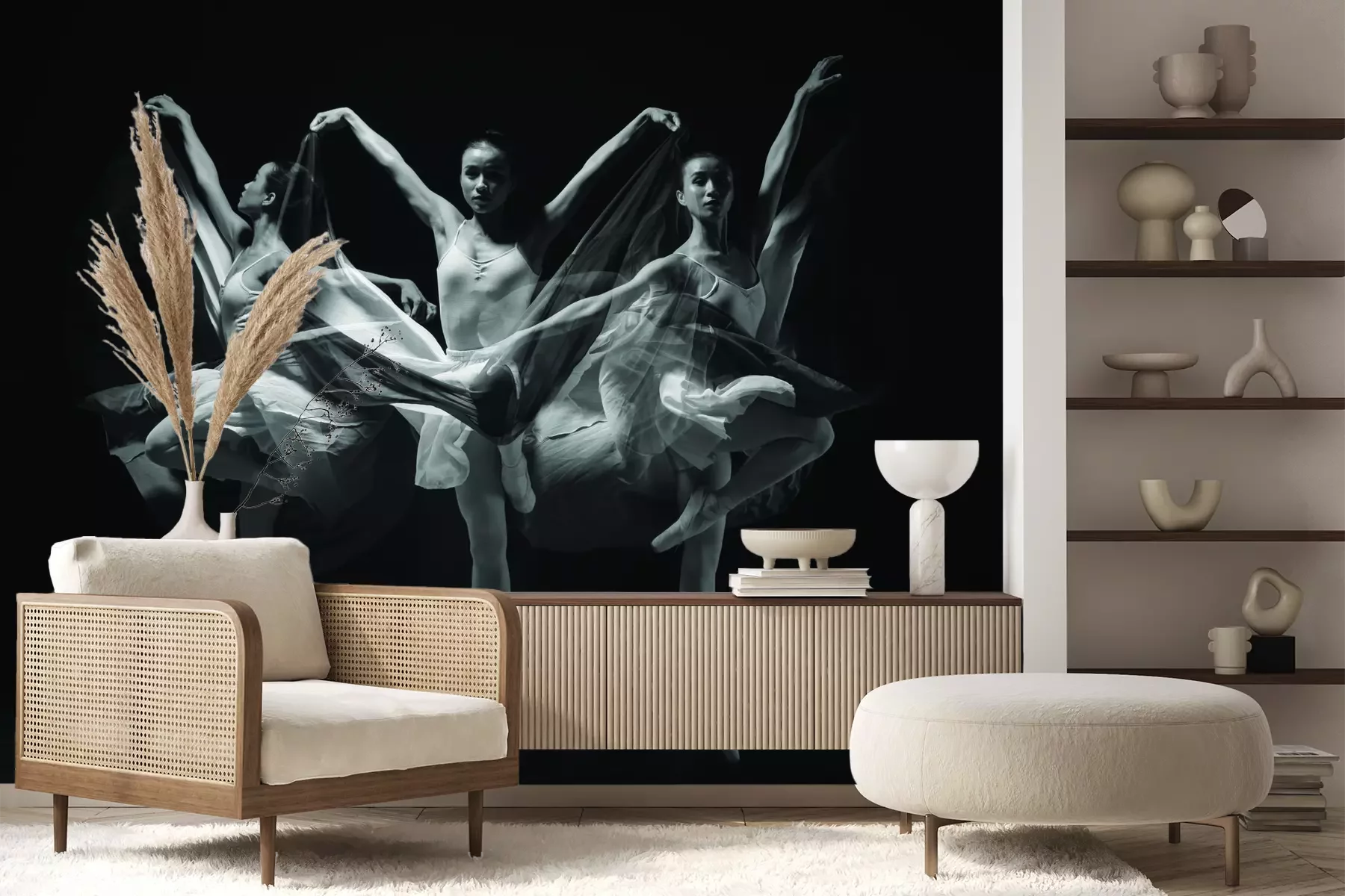 Das Material Premium+ besteht aus einer strukturierten Vinyl-Oberschicht und einem Trägermaterial (Vlies) mit einer Grammatur von 255 g/m², das kleine Unebenheiten der Wand zuverlässig kaschiert. Die feine Sandstruktur verleiht der Oberfläche eine luxuriöse Haptik, während das halbmatte Finish die Tiefe der Farben betont. Das Material ist dampfdurchlässig – so kann diese Fototapete auch in Küchen und Badezimmern eingesetzt werden. Die maximale Breite einer Tapetenbahn beträgt 100 cm. Bei größeren Abmessungen besteht die Fototapete aus mehreren gleich großen Bahnen. Der Kleber wird direkt auf die Wand aufgetragen, und die Fototapete wird auf Stoß angebracht, was für einen ästhetischen Effekt ohne sichtbare Fugen sorgt. Die Oberfläche ist pflegeleicht und kann bei Bedarf sanft mit einem feuchten Tuch abgewischt werden.