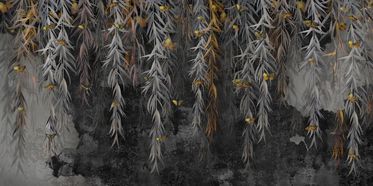 Fototapete: Hängende Ranken einer Pflanze auf dunklem Betonhintergrund