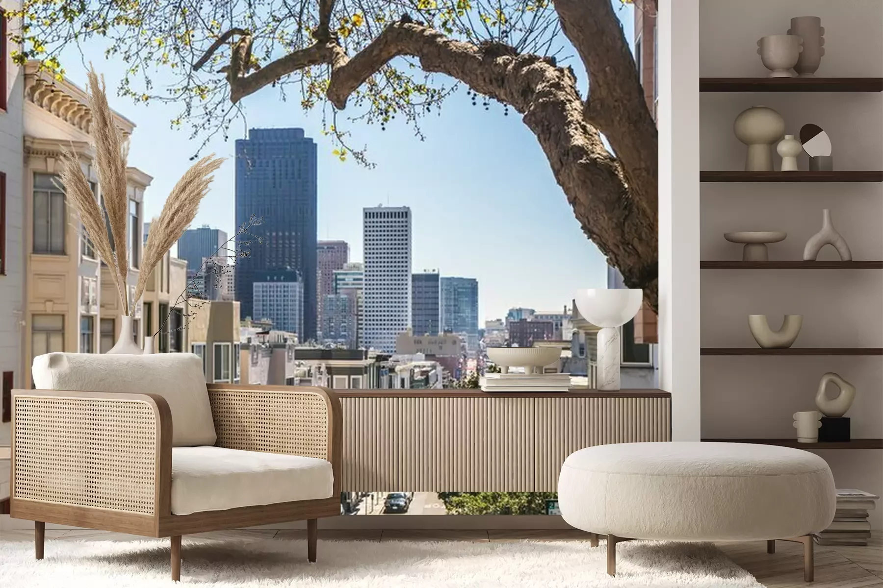 Fototapete Häuser und Wolkenkratzer auf Panorama von San Francisco