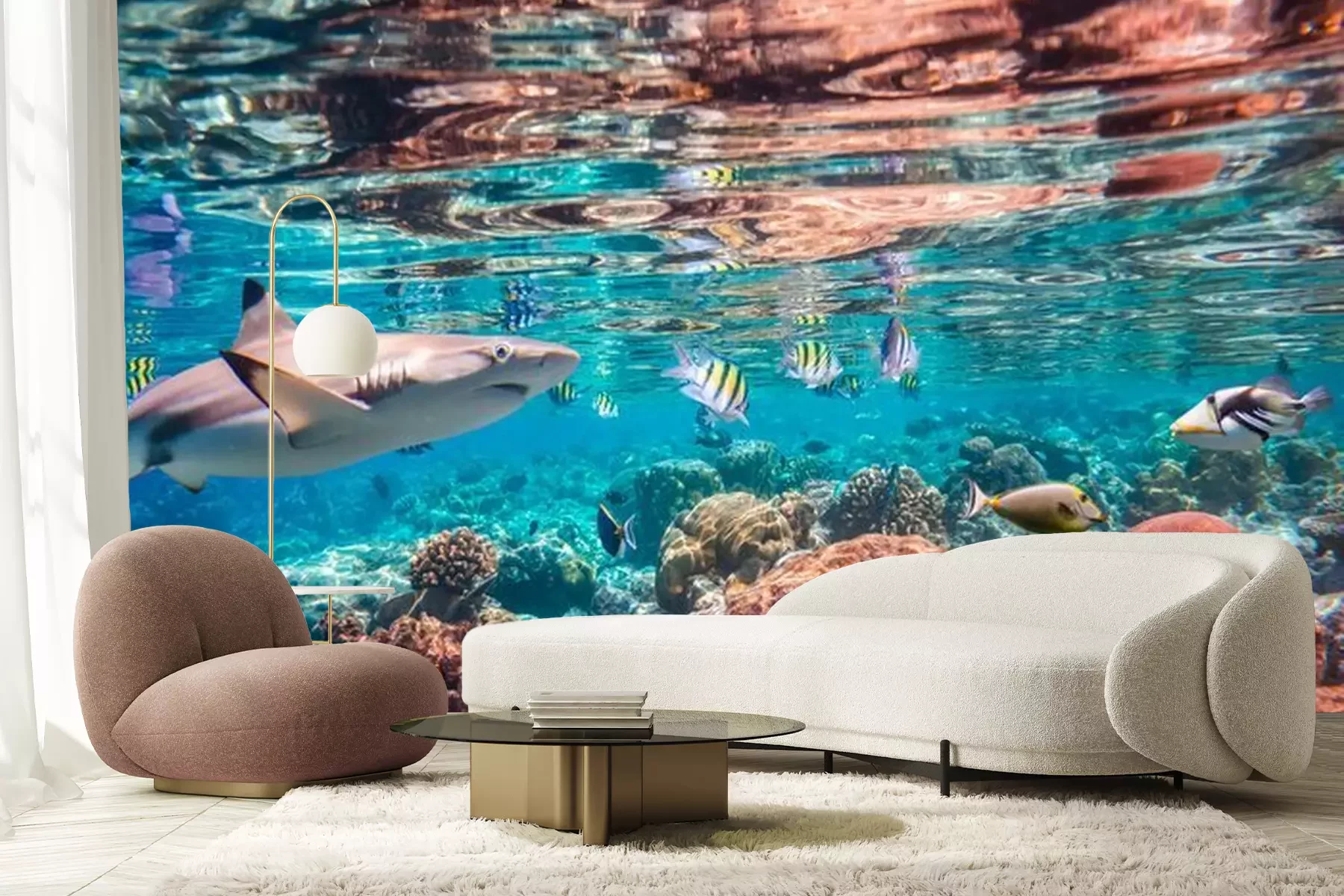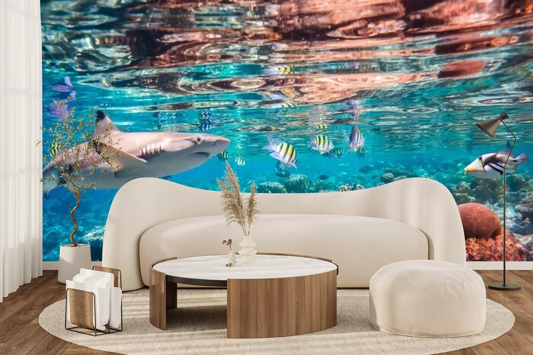 Tropisches Korallenriff und HaiProblemlose Lieferung durch vertrauenswürdige Spediteure