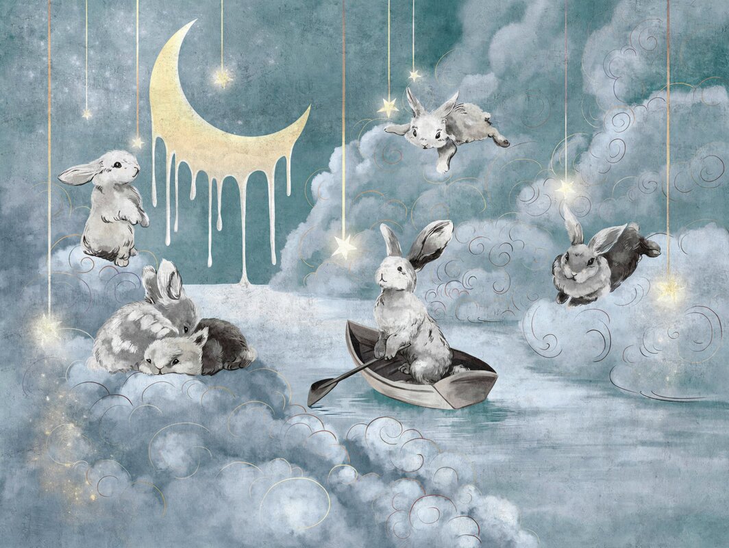 Fototapete: Hasen im Himmelsland - eine Komposition für Kinder