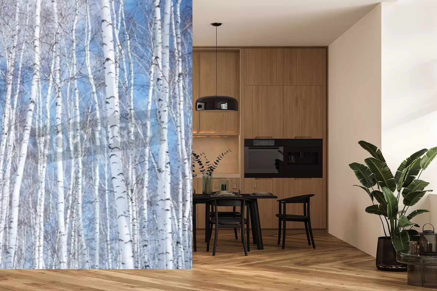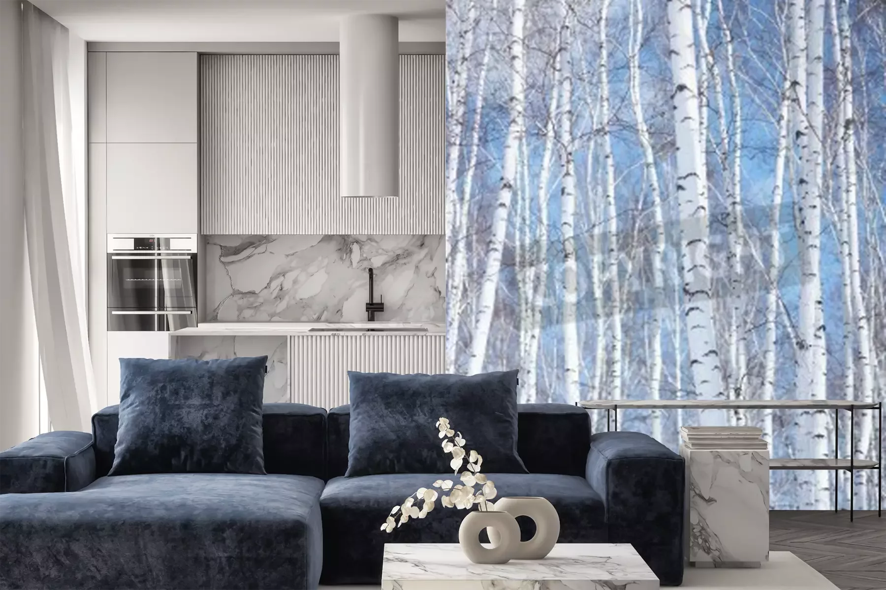 Fototapete Helle Birken vor dem Hintergrund des Himmels