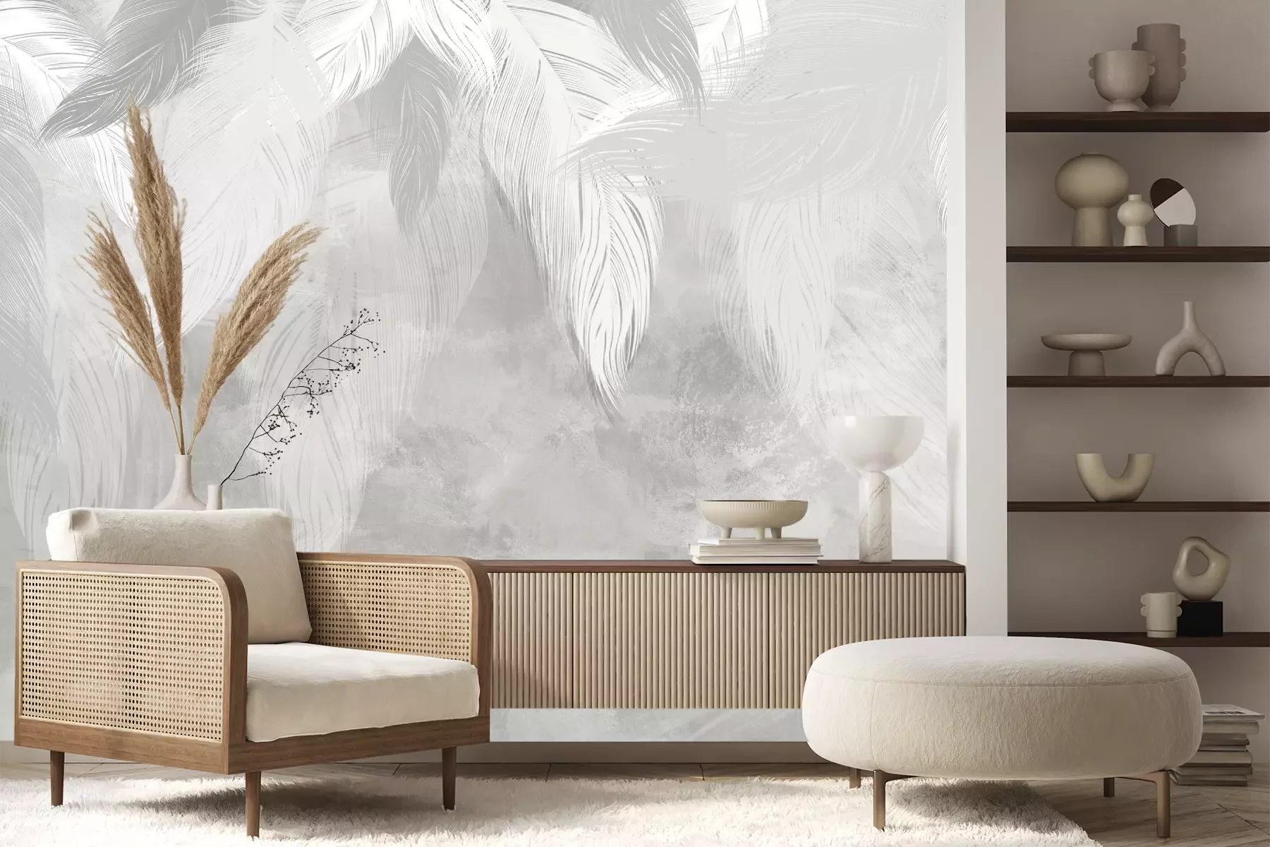 Das Material Premium+ besteht aus einer strukturierten Vinyl-Oberschicht und einem Trägermaterial (Vlies) mit einer Grammatur von 255 g/m², das kleine Unebenheiten der Wand zuverlässig kaschiert. Die feine Sandstruktur verleiht der Oberfläche eine luxuriöse Haptik, während das halbmatte Finish die Tiefe der Farben betont. Das Material ist dampfdurchlässig – so kann diese Fototapete auch in Küchen und Badezimmern eingesetzt werden. Die maximale Breite einer Tapetenbahn beträgt 100 cm. Bei größeren Abmessungen besteht die Fototapete aus mehreren gleich großen Bahnen. Der Kleber wird direkt auf die Wand aufgetragen, und die Fototapete wird auf Stoß angebracht, was für einen ästhetischen Effekt ohne sichtbare Fugen sorgt. Die Oberfläche ist pflegeleicht und kann bei Bedarf sanft mit einem feuchten Tuch abgewischt werden.