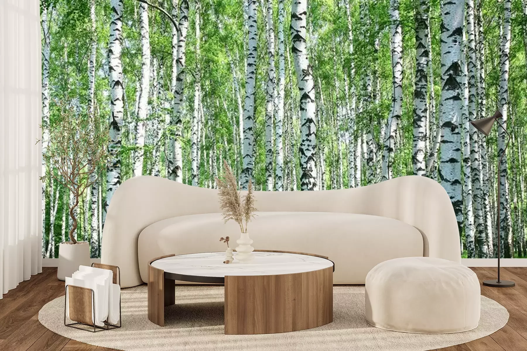 Birken auf der WieseFototapete