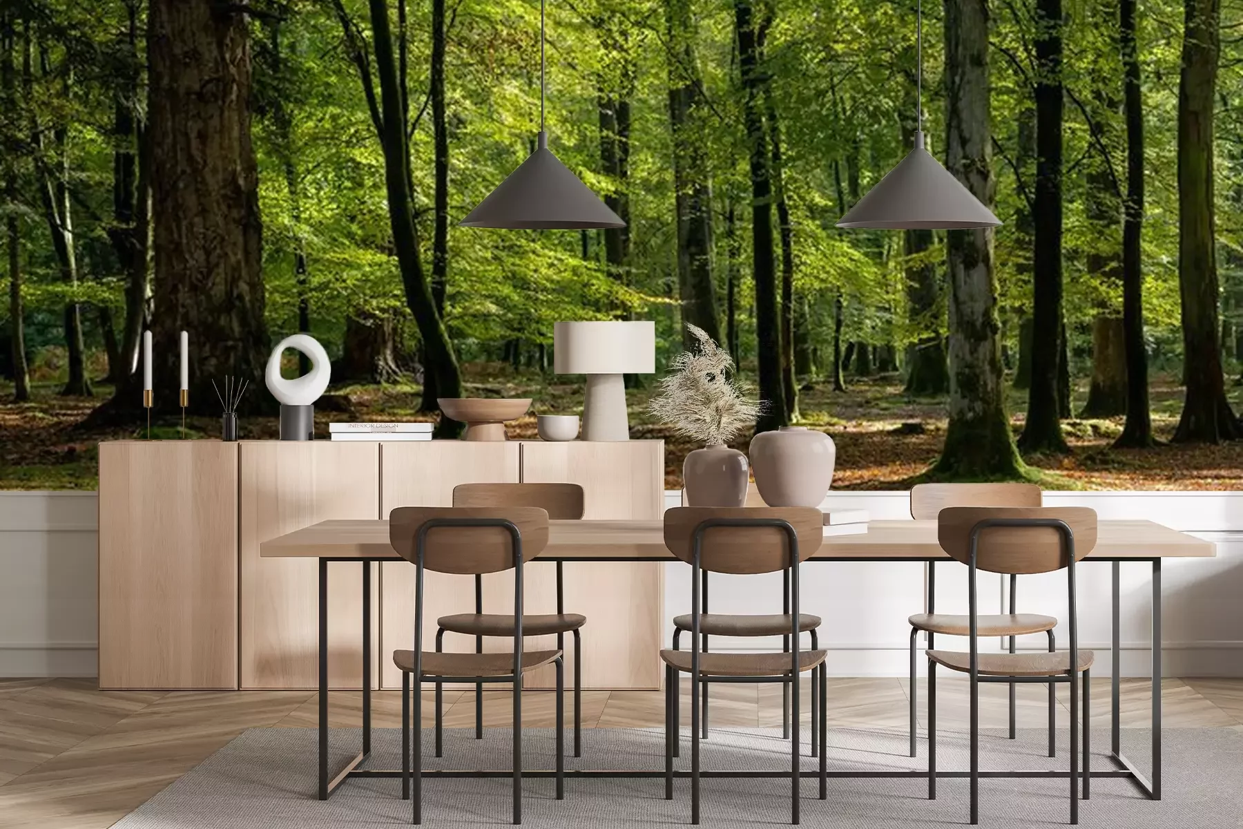 Das Material Premium+ besteht aus einer strukturierten Vinyl-Oberschicht und einem Trägermaterial (Vlies) mit einer Grammatur von 255 g/m², das kleine Unebenheiten der Wand zuverlässig kaschiert. Die feine Sandstruktur verleiht der Oberfläche eine luxuriöse Haptik, während das halbmatte Finish die Tiefe der Farben betont. Das Material ist dampfdurchlässig – so kann diese Fototapete auch in Küchen und Badezimmern eingesetzt werden. Die maximale Breite einer Tapetenbahn beträgt 100 cm. Bei größeren Abmessungen besteht die Fototapete aus mehreren gleich großen Bahnen. Der Kleber wird direkt auf die Wand aufgetragen, und die Fototapete wird auf Stoß angebracht, was für einen ästhetischen Effekt ohne sichtbare Fugen sorgt. Die Oberfläche ist pflegeleicht und kann bei Bedarf sanft mit einem feuchten Tuch abgewischt werden.
