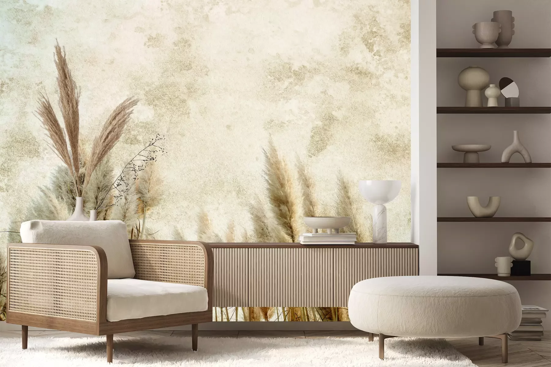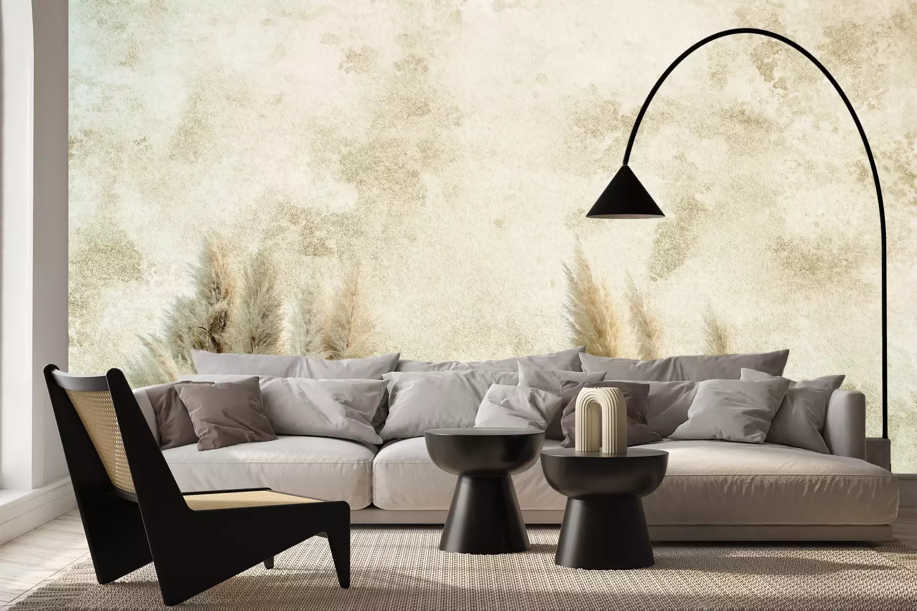 Das Material Premium+ besteht aus einer strukturierten Vinyl-Oberschicht und einem Trägermaterial (Vlies) mit einer Grammatur von 255 g/m², das kleine Unebenheiten der Wand zuverlässig kaschiert. Die feine Sandstruktur verleiht der Oberfläche eine luxuriöse Haptik, während das halbmatte Finish die Tiefe der Farben betont. Das Material ist dampfdurchlässig – so kann diese Fototapete auch in Küchen und Badezimmern eingesetzt werden. Die maximale Breite einer Tapetenbahn beträgt 100 cm. Bei größeren Abmessungen besteht die Fototapete aus mehreren gleich großen Bahnen. Der Kleber wird direkt auf die Wand aufgetragen, und die Fototapete wird auf Stoß angebracht, was für einen ästhetischen Effekt ohne sichtbare Fugen sorgt. Die Oberfläche ist pflegeleicht und kann bei Bedarf sanft mit einem feuchten Tuch abgewischt werden.