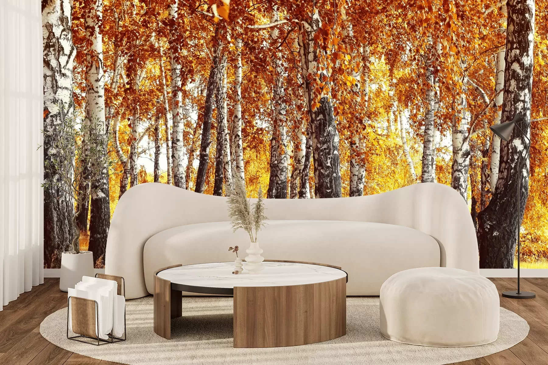 Fototapete Herbstlandschaft mit Birken