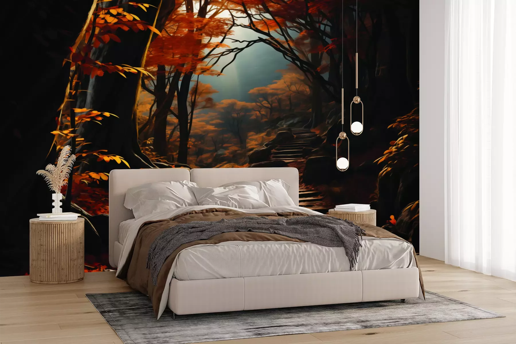 Das Material Premium+ besteht aus einer strukturierten Vinyl-Oberschicht und einem Trägermaterial (Vlies) mit einer Grammatur von 255 g/m², das kleine Unebenheiten der Wand zuverlässig kaschiert. Die feine Sandstruktur verleiht der Oberfläche eine luxuriöse Haptik, während das halbmatte Finish die Tiefe der Farben betont. Das Material ist dampfdurchlässig – so kann diese Fototapete auch in Küchen und Badezimmern eingesetzt werden. Die maximale Breite einer Tapetenbahn beträgt 100 cm. Bei größeren Abmessungen besteht die Fototapete aus mehreren gleich großen Bahnen. Der Kleber wird direkt auf die Wand aufgetragen, und die Fototapete wird auf Stoß angebracht, was für einen ästhetischen Effekt ohne sichtbare Fugen sorgt. Die Oberfläche ist pflegeleicht und kann bei Bedarf sanft mit einem feuchten Tuch abgewischt werden.