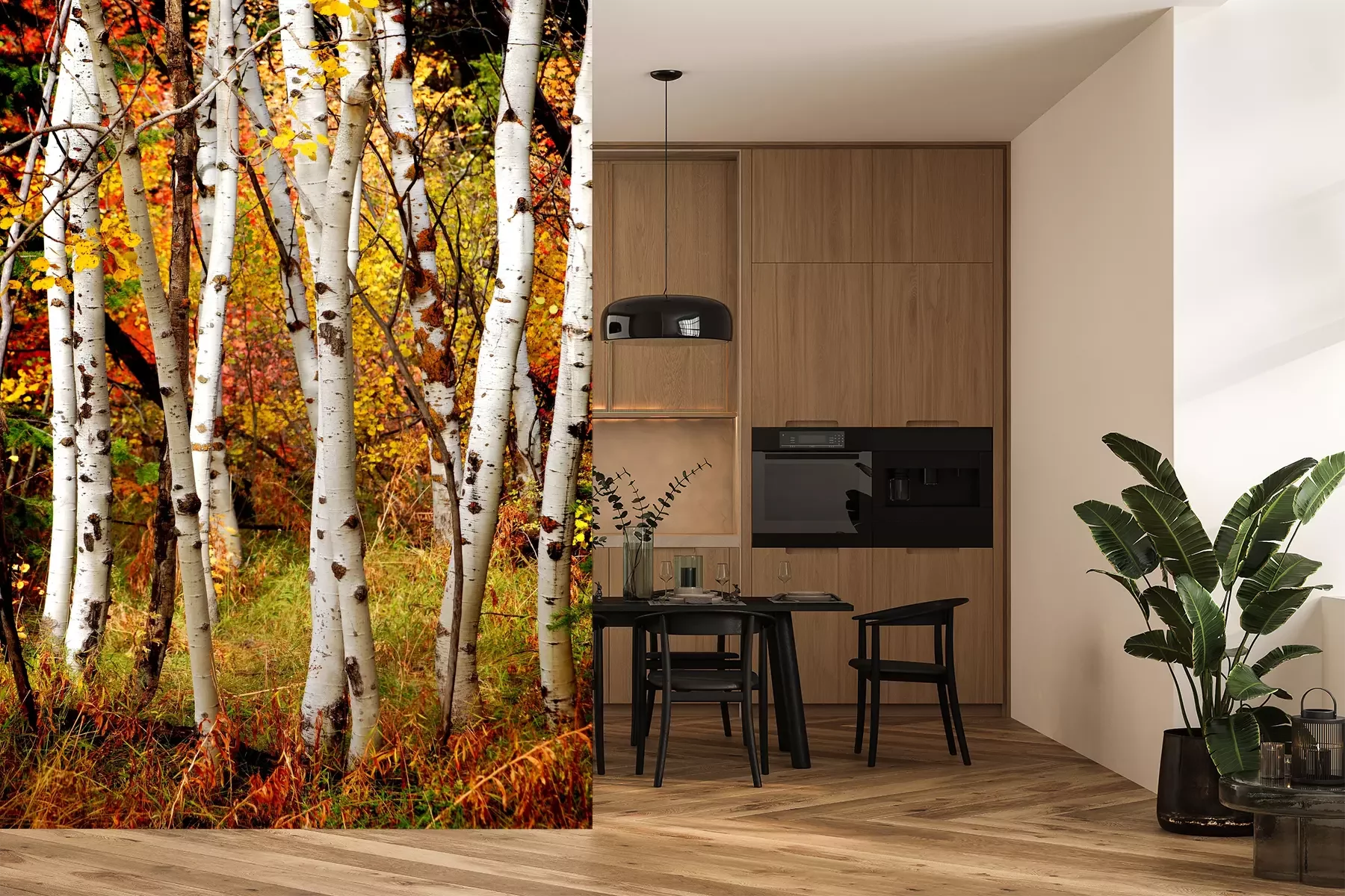 Das Material Premium+ besteht aus einer strukturierten Vinyl-Oberschicht und einem Trägermaterial (Vlies) mit einer Grammatur von 255 g/m², das kleine Unebenheiten der Wand zuverlässig kaschiert. Die feine Sandstruktur verleiht der Oberfläche eine luxuriöse Haptik, während das halbmatte Finish die Tiefe der Farben betont. Das Material ist dampfdurchlässig – so kann diese Fototapete auch in Küchen und Badezimmern eingesetzt werden. Die maximale Breite einer Tapetenbahn beträgt 100 cm. Bei größeren Abmessungen besteht die Fototapete aus mehreren gleich großen Bahnen. Der Kleber wird direkt auf die Wand aufgetragen, und die Fototapete wird auf Stoß angebracht, was für einen ästhetischen Effekt ohne sichtbare Fugen sorgt. Die Oberfläche ist pflegeleicht und kann bei Bedarf sanft mit einem feuchten Tuch abgewischt werden.