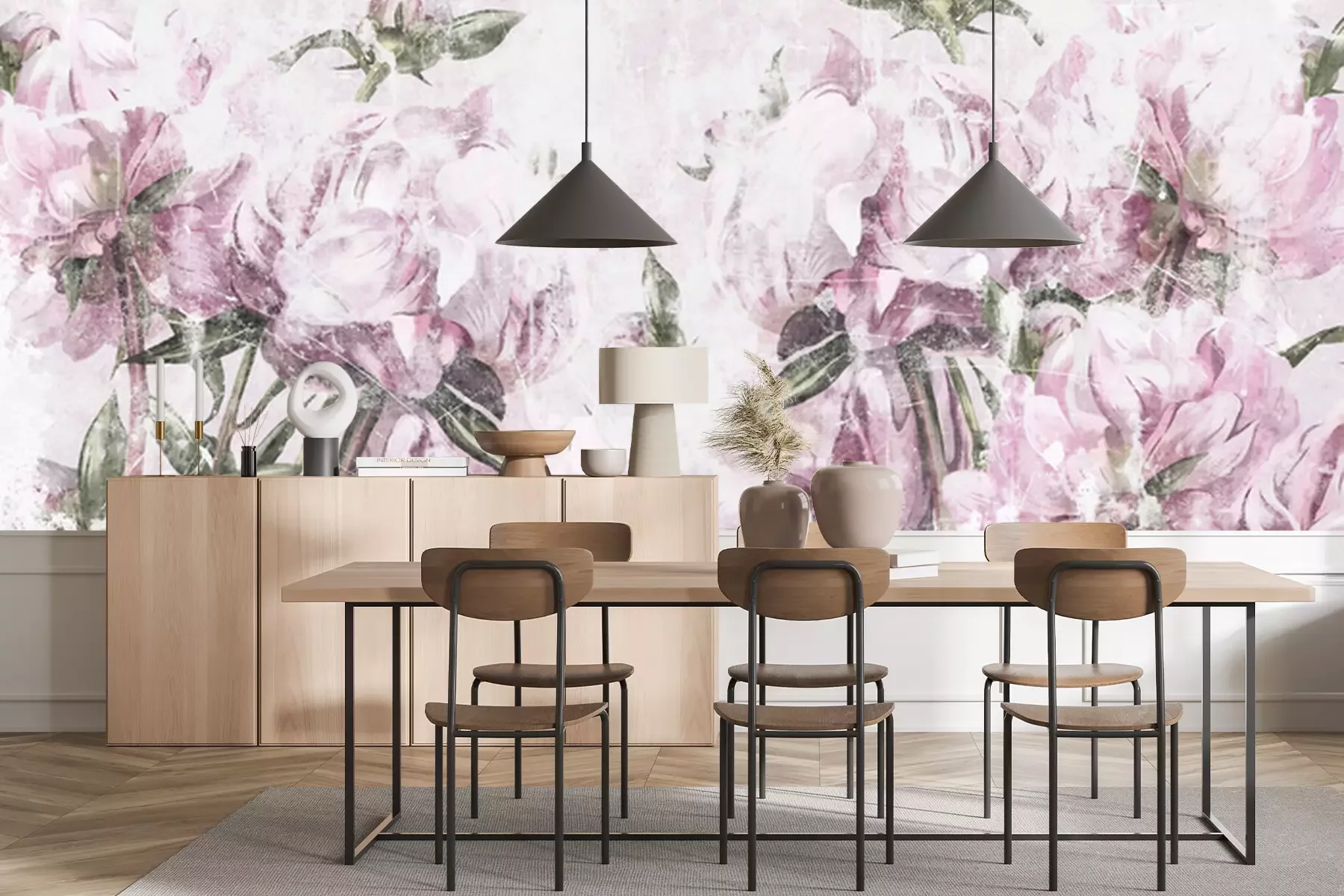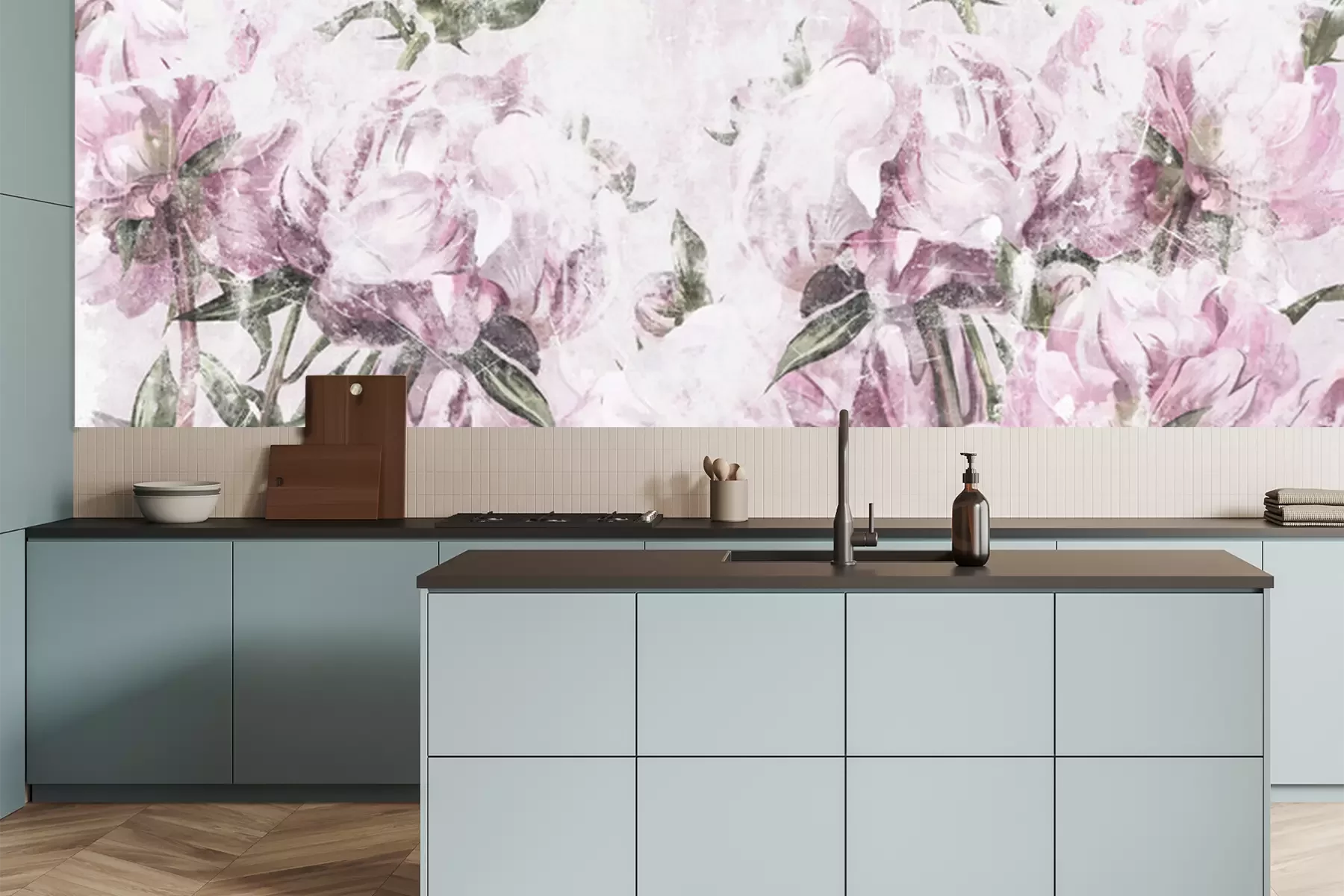 Fototapete Herrliche Pfingstrosen auf der Textur