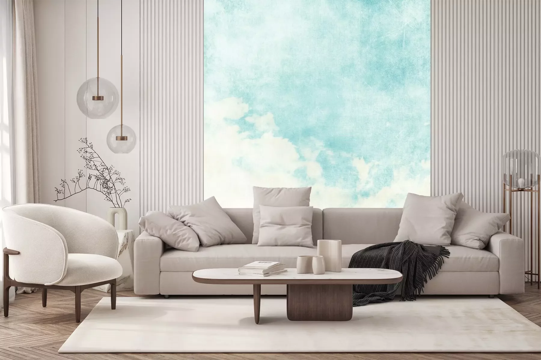 Die Fototapeten werden in Bahnen geliefert. Die Größe und die Anzahl der Bahnen, aus denen die gesamte Fototapete besteht, hängen vom gewählten Material ab. Wenn die Größe die maximale Breite des Materials überschreitet, besteht der Ausdruck aus mehreren gleich großen Bahnen.