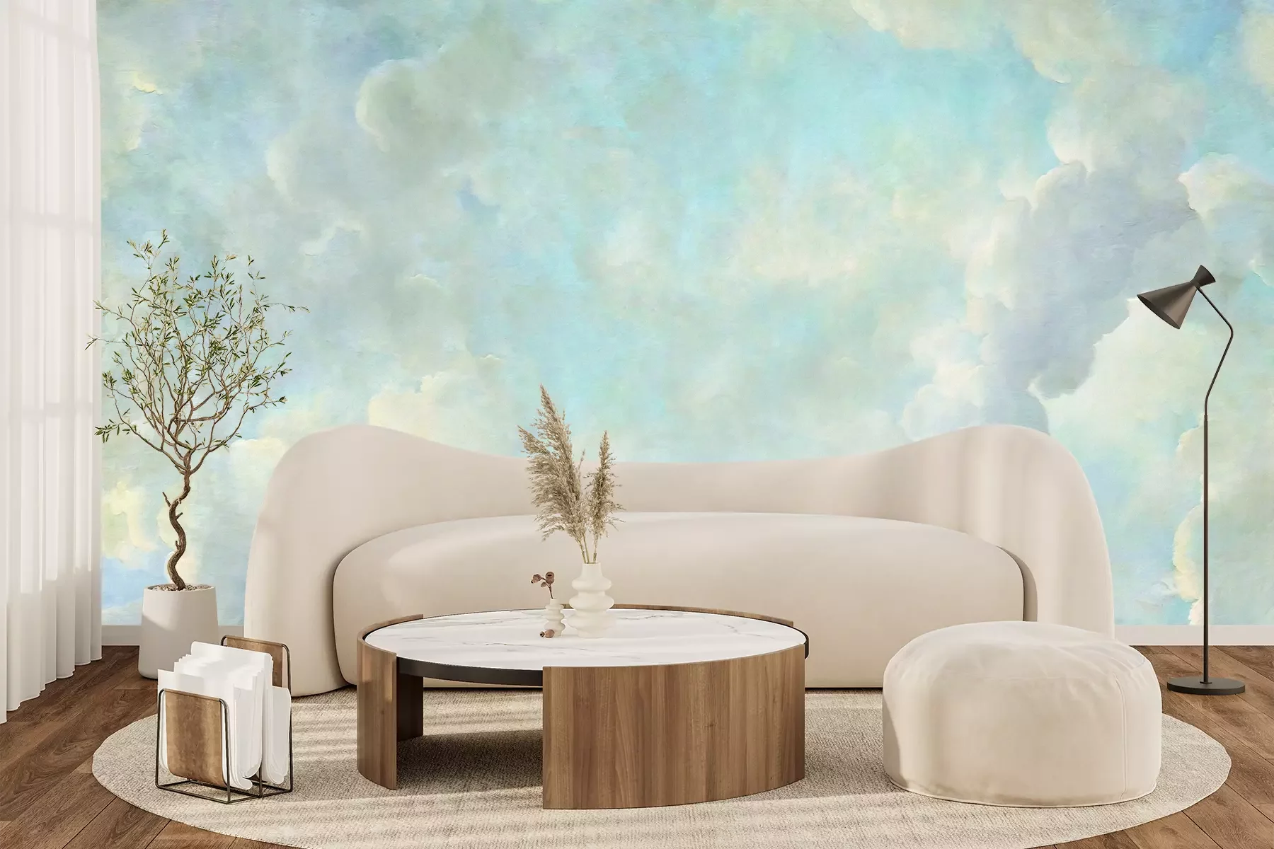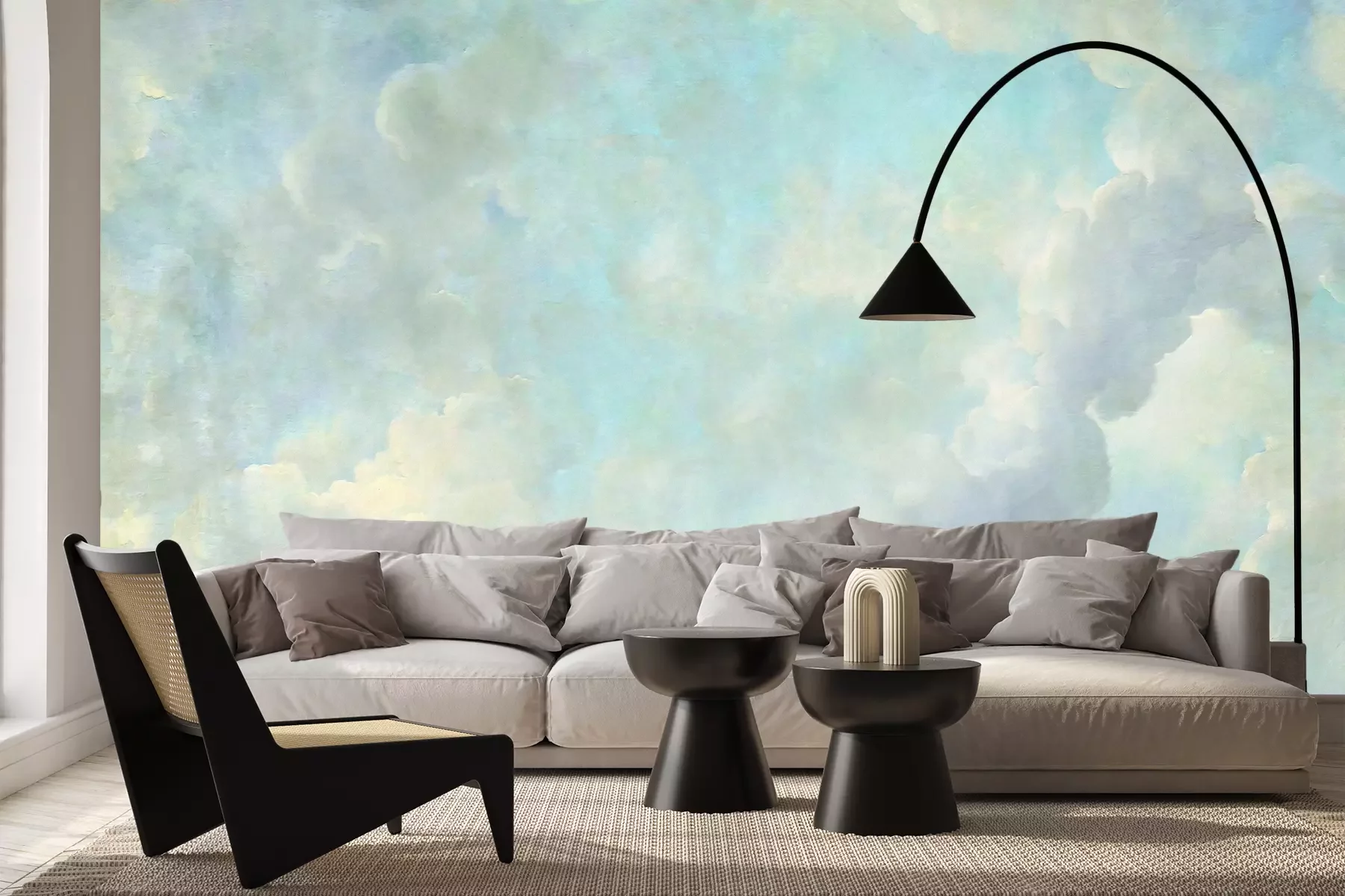 Das Material Premium+ besteht aus einer strukturierten Vinyl-Oberschicht und einem Trägermaterial (Vlies) mit einer Grammatur von 255 g/m², das kleine Unebenheiten der Wand zuverlässig kaschiert. Die feine Sandstruktur verleiht der Oberfläche eine luxuriöse Haptik, während das halbmatte Finish die Tiefe der Farben betont. Das Material ist dampfdurchlässig – so kann diese Fototapete auch in Küchen und Badezimmern eingesetzt werden. Die maximale Breite einer Tapetenbahn beträgt 100 cm. Bei größeren Abmessungen besteht die Fototapete aus mehreren gleich großen Bahnen. Der Kleber wird direkt auf die Wand aufgetragen, und die Fototapete wird auf Stoß angebracht, was für einen ästhetischen Effekt ohne sichtbare Fugen sorgt. Die Oberfläche ist pflegeleicht und kann bei Bedarf sanft mit einem feuchten Tuch abgewischt werden.