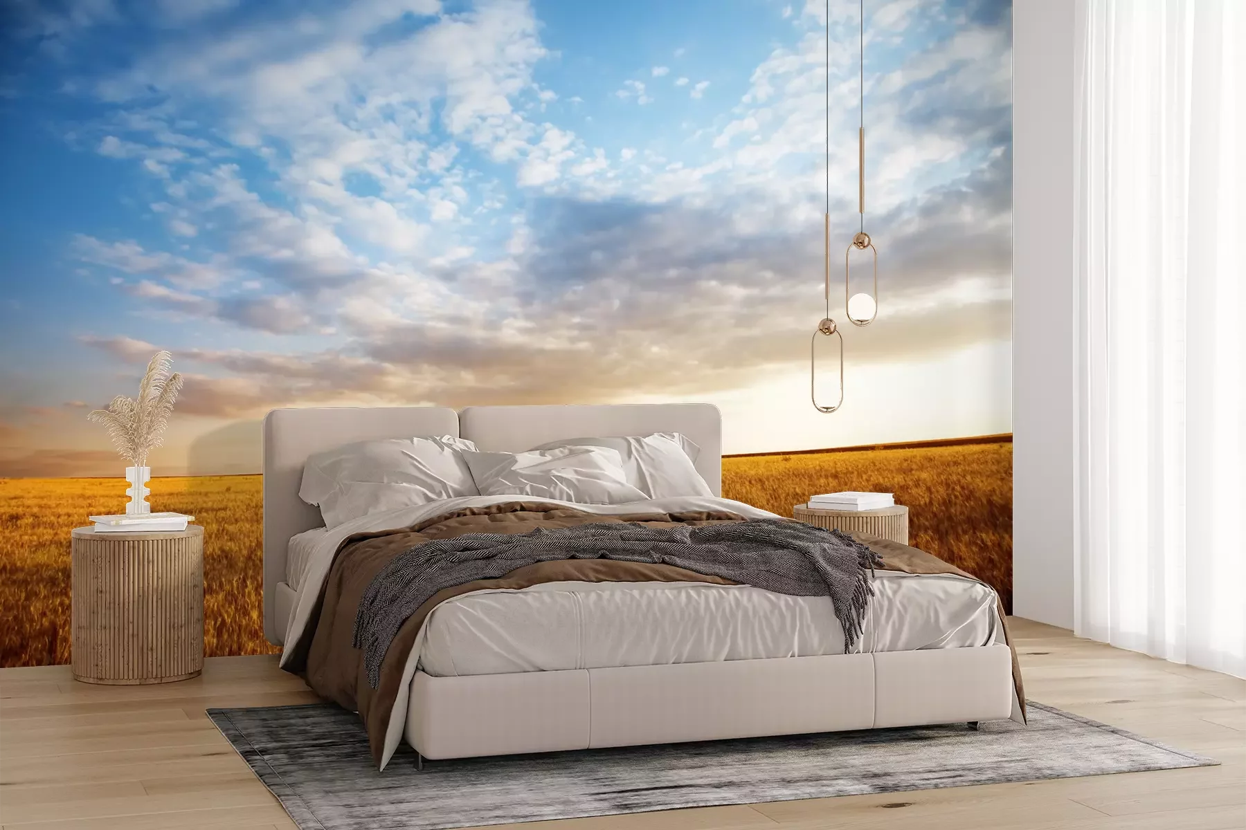Die Fototapeten werden in Bahnen geliefert. Die Größe und die Anzahl der Bahnen, aus denen die gesamte Fototapete besteht, hängen vom gewählten Material ab. Wenn die Größe die maximale Breite des Materials überschreitet, besteht der Ausdruck aus mehreren gleich großen Bahnen.