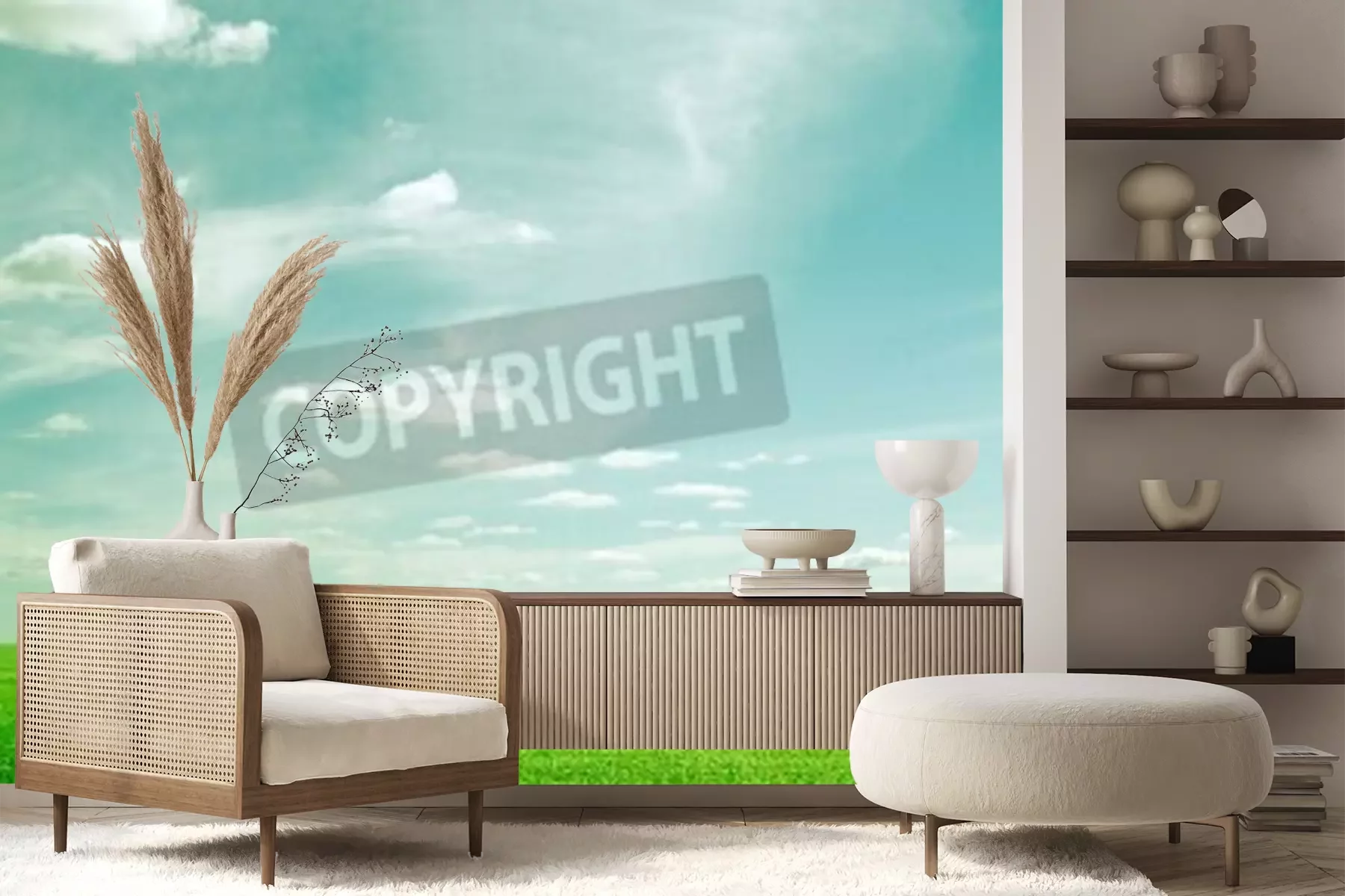 Fototapete Himmel über grünem Gras